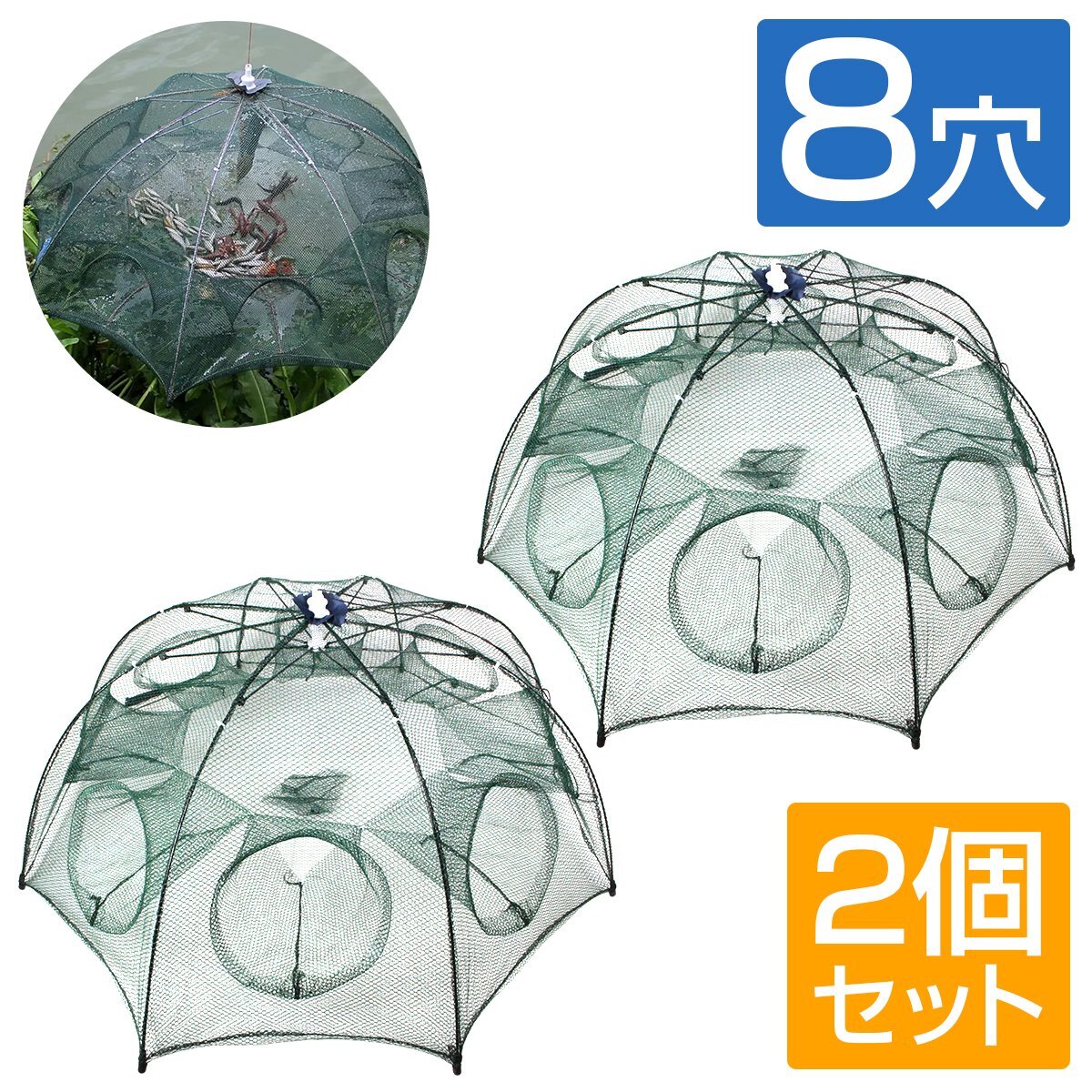 (Msiz) 2個set 8穴 仕掛け網 タコ ウナギ アナゴ エビ カニ 狙い 捕獲網 八ツ手網 八角網 収納 折り畳み式 穴子 魚網 漁具