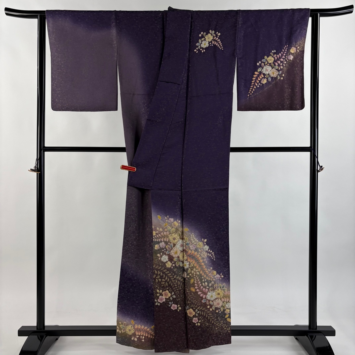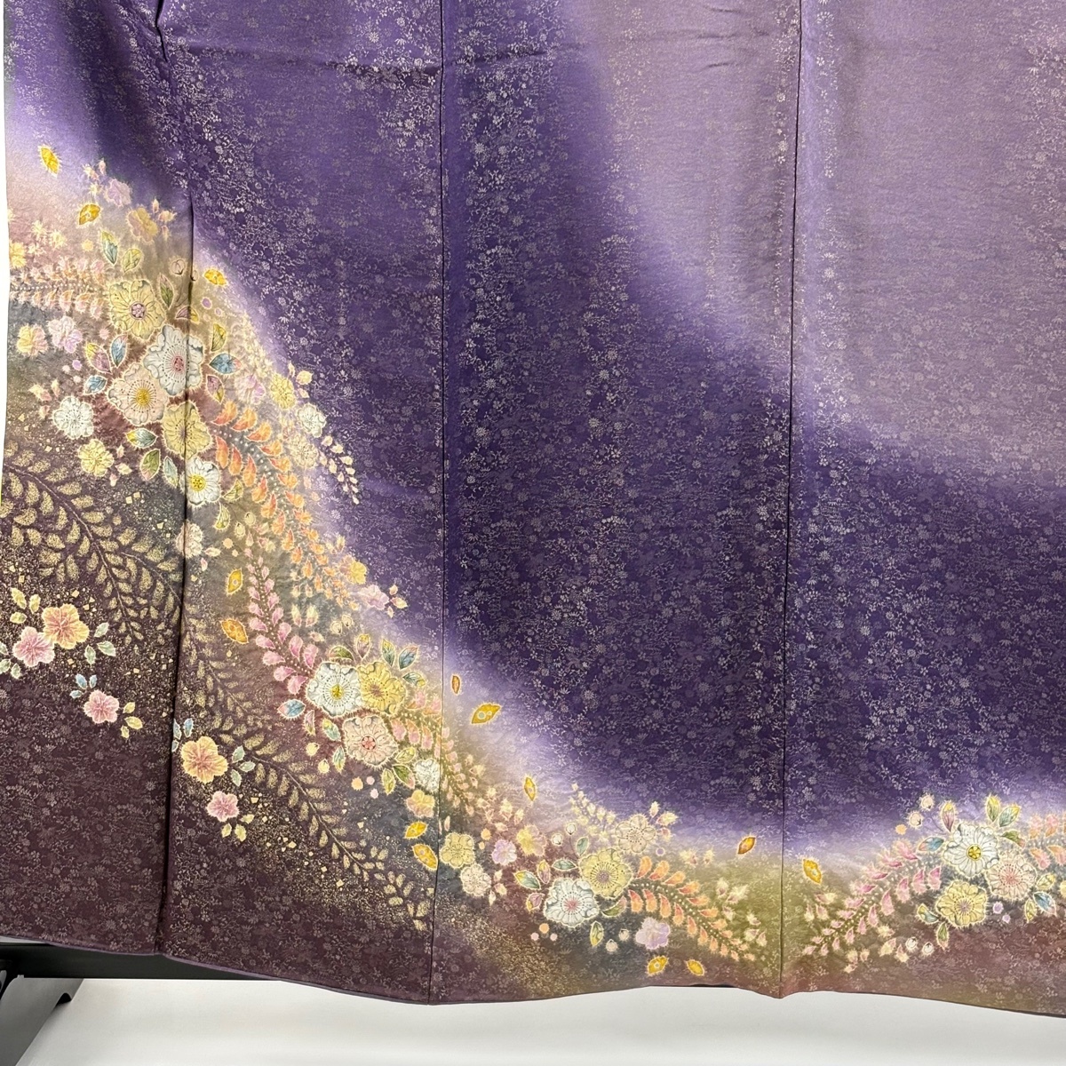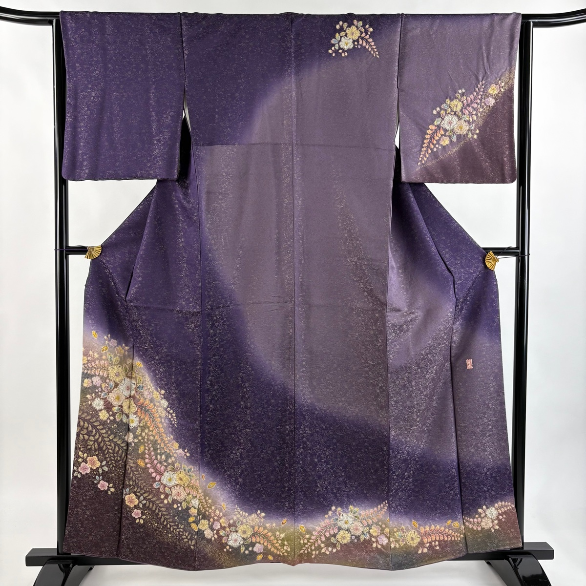| 付下げ 逸品 徳永憲峯 落款 辻が花 金通し ぼかし 紫 袷 身丈159 裄丈64 M 正絹 【中古】 |