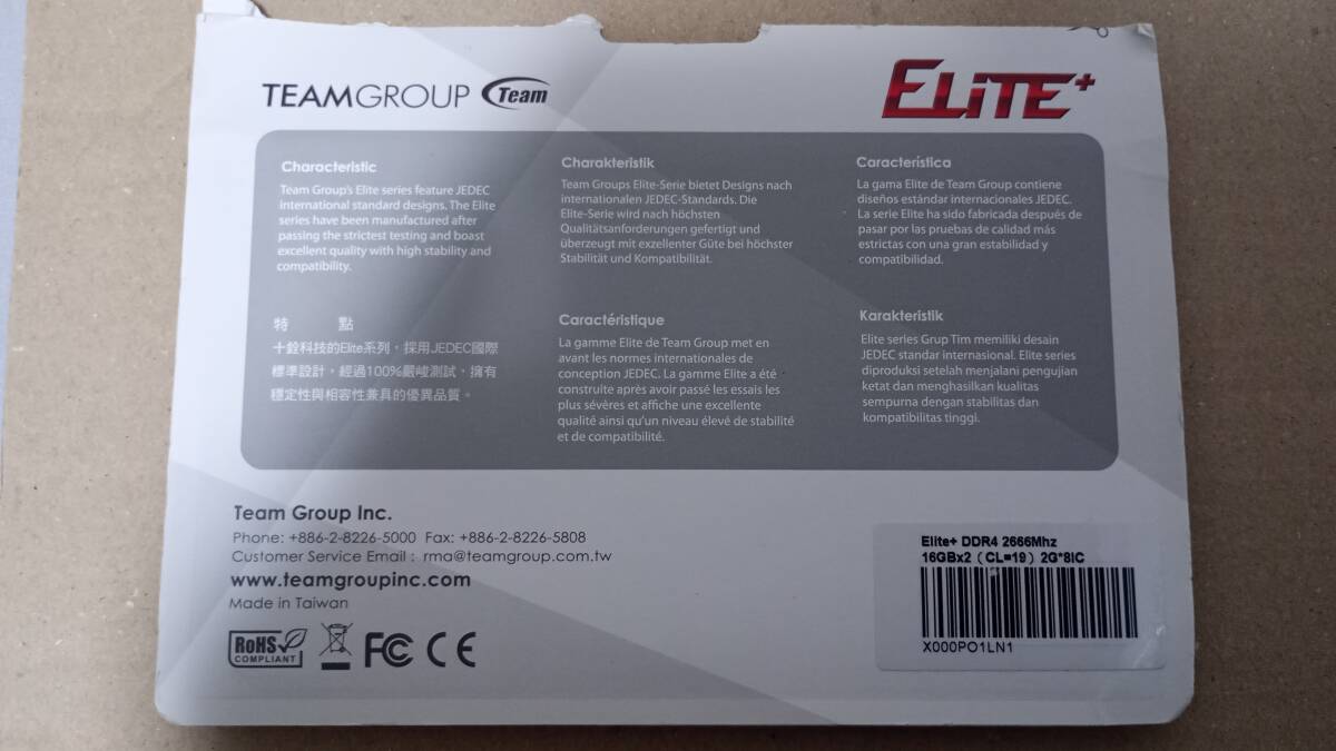 DDR4メモリ「memtest86+確認済」 デスクトップPC用 Team DDR4 2666MHz PC4-21300 32GB (16GBx2枚) Elite Plus シリーズ