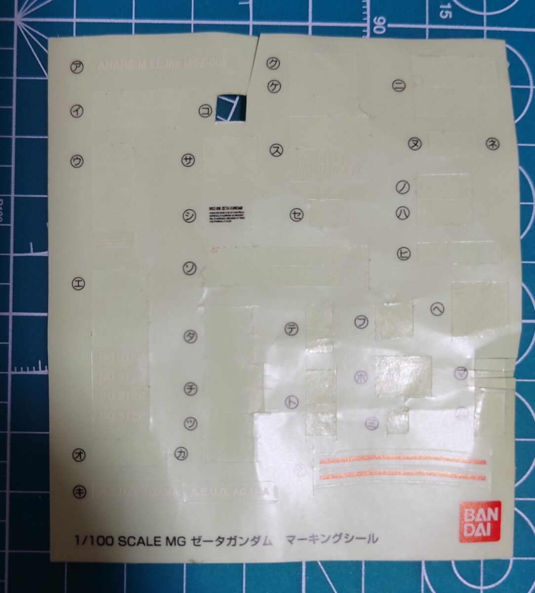 MG ゼータプラス テスト機カラータイプ 説明書 ステッカー