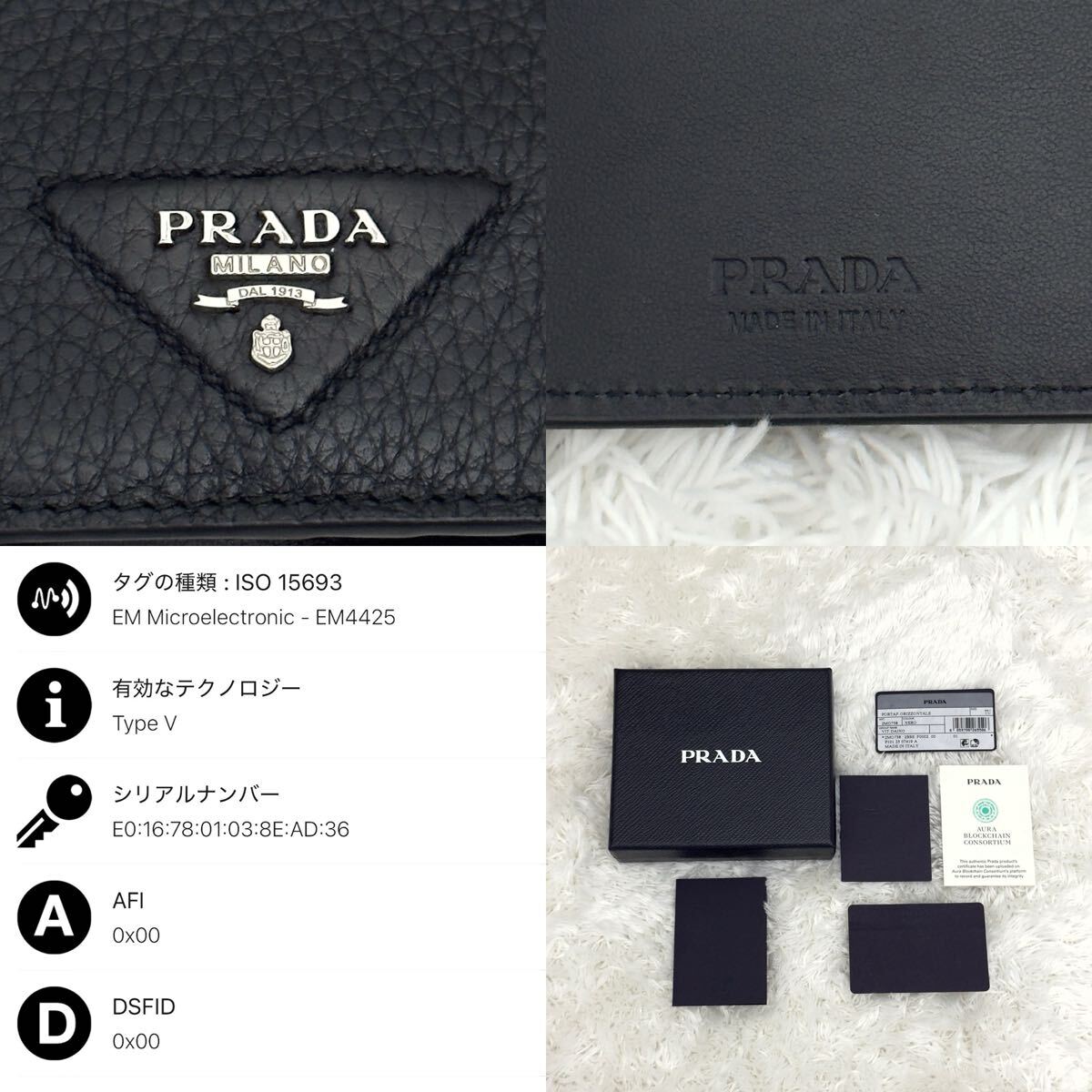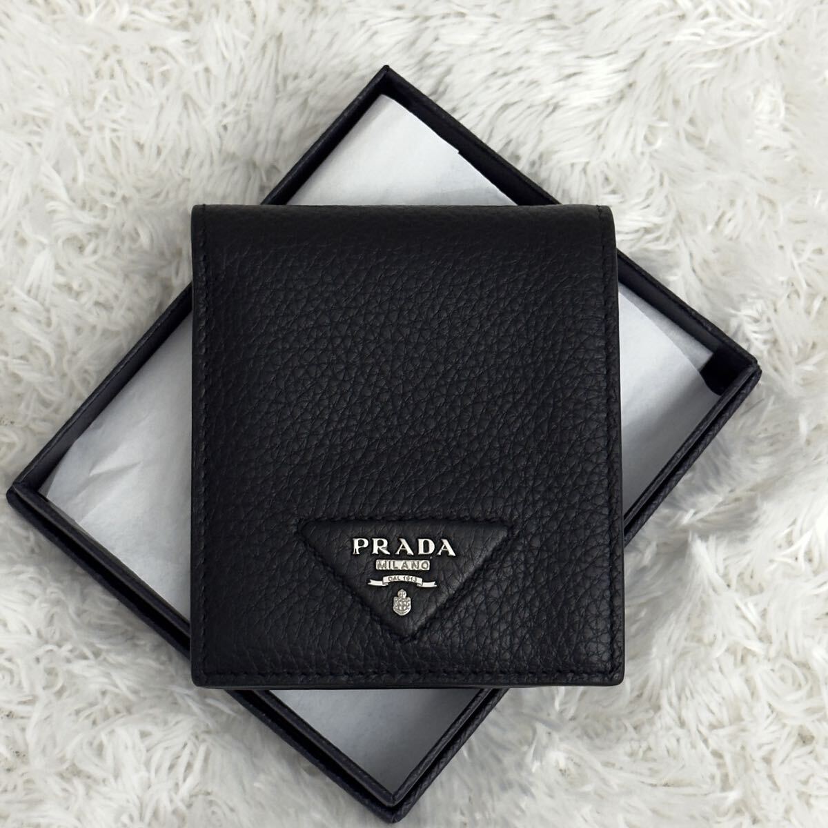 現行 プラダ ヴィッテロダイノレザー 二つ折り 財布 ICチップ内蔵 RFID