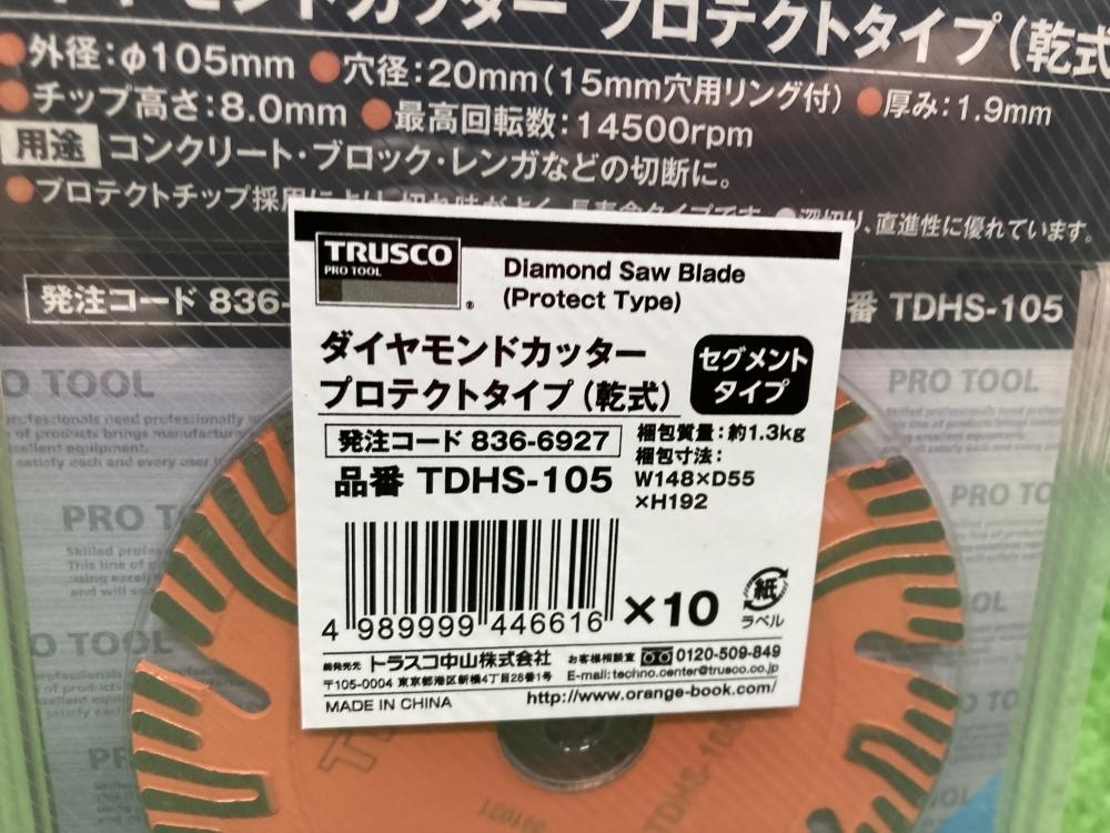 トラスコ ■商品名 ダイヤモンドカッター プロテクトタイプ(乾式) ■型番 TDHS-105 |