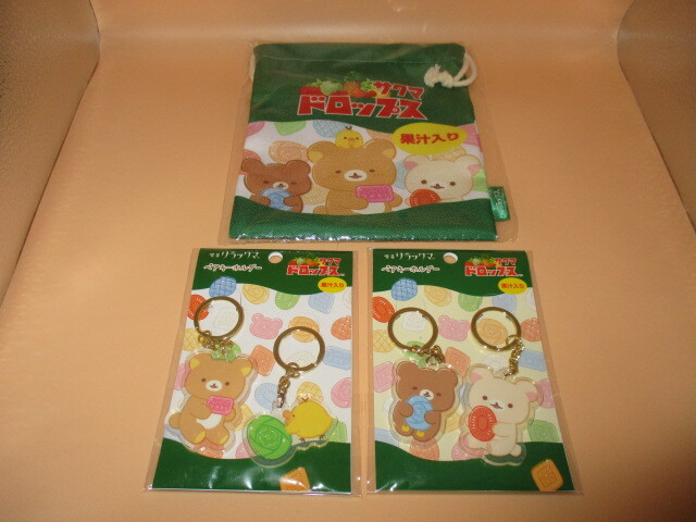 未開封新品 喫茶リラックマ サクマドロップスコラボ 巾着1枚 キーホルダー2種