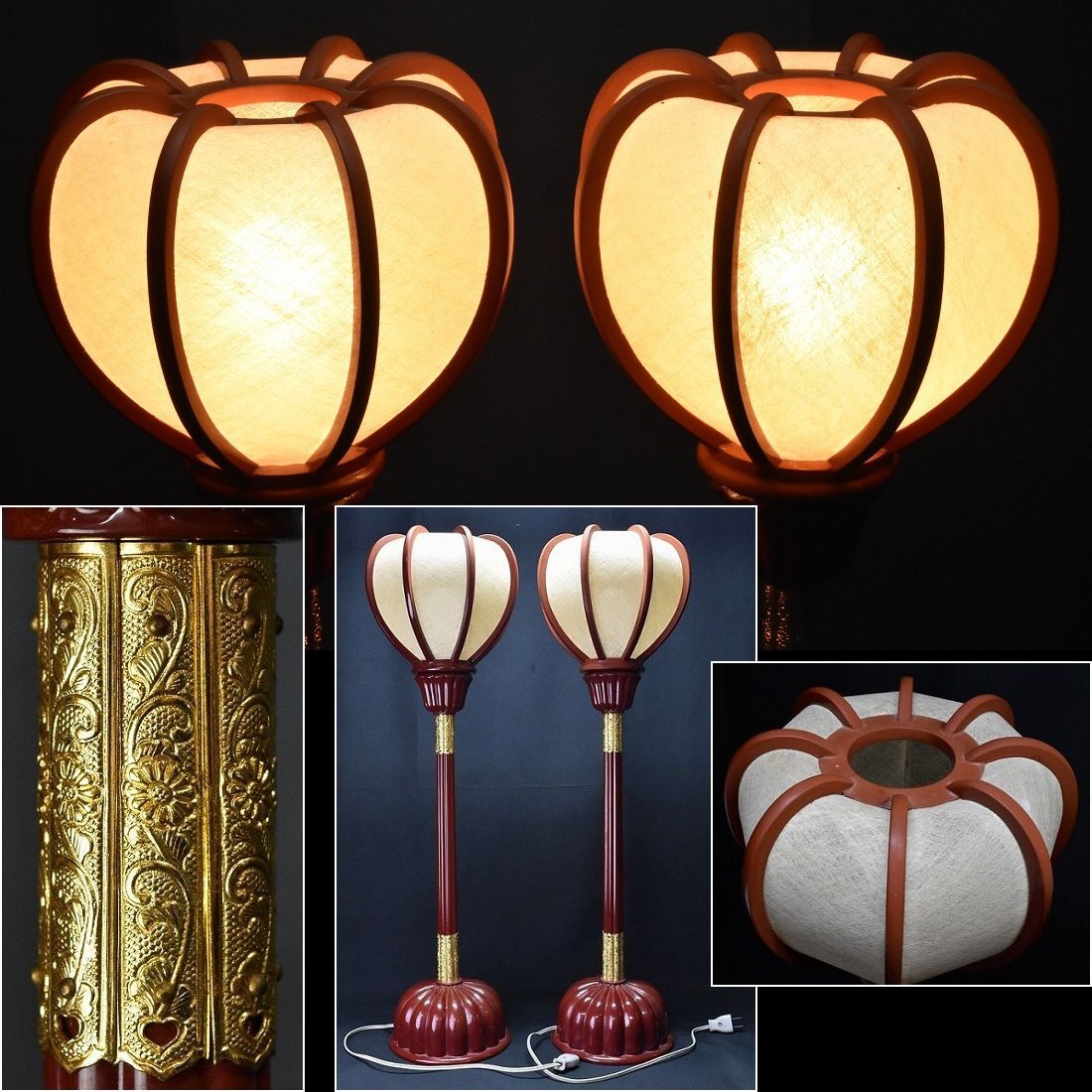 寺院 木製 朱塗 雪洞 一対 行灯 燭台 菊燈 ぼんぼり 和紙 高77.5cm 仏具 漆塗 照明 電灯 K556-1 |