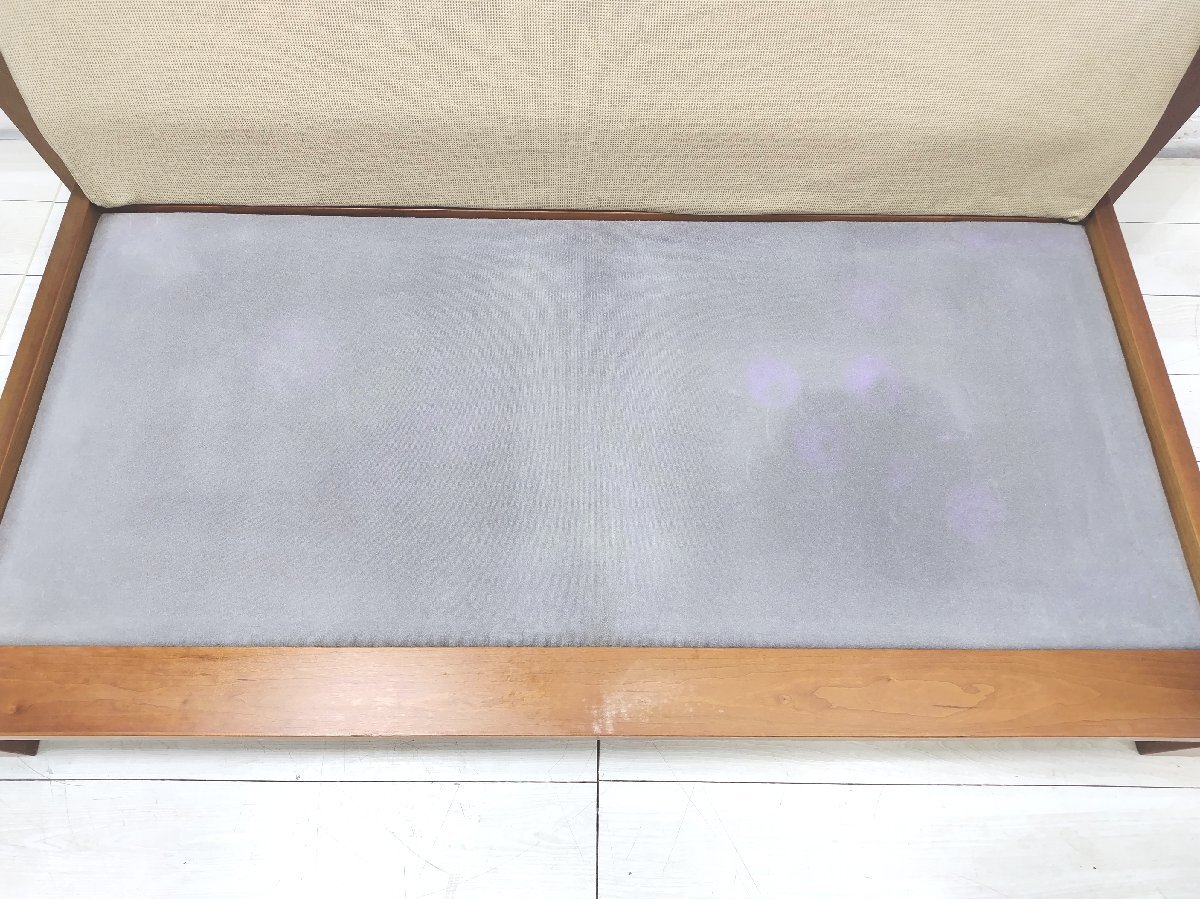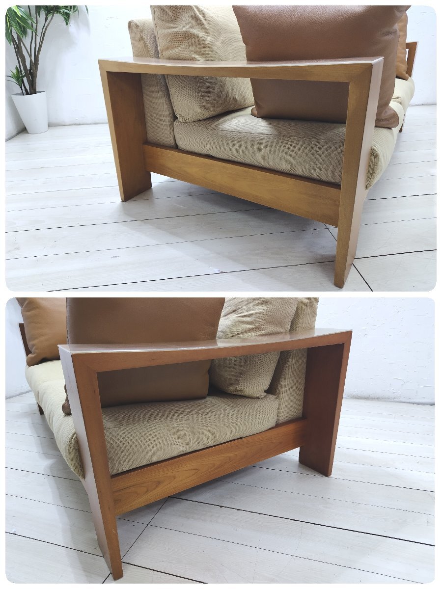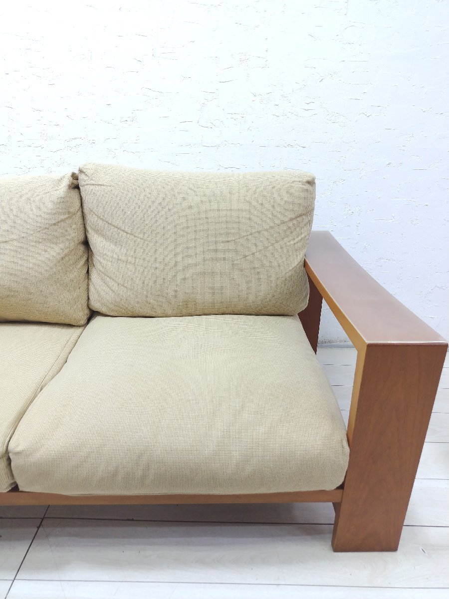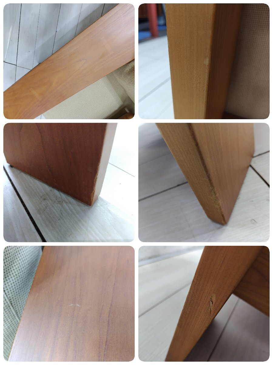フレームに多少の傷また普段は見えない所ですがクッション下(画像8枚目)にシミが見られます。クッション等の状態は良く中古品としての状態は良いソファだと思います。