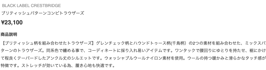 ブリティッシュパターンコンビトラウザーズ。BLACK LABEL CRESTBRIDGEのクレイジーチェックスラックスUSED。「バーバリー・ブラックレーベル」の後継ブランドとして位置づけられている三陽商会のブランドです。英国トラッドが特徴でこちらも伝統的な柄が2種類ミックスされた遊び心あるデザインとなっています。