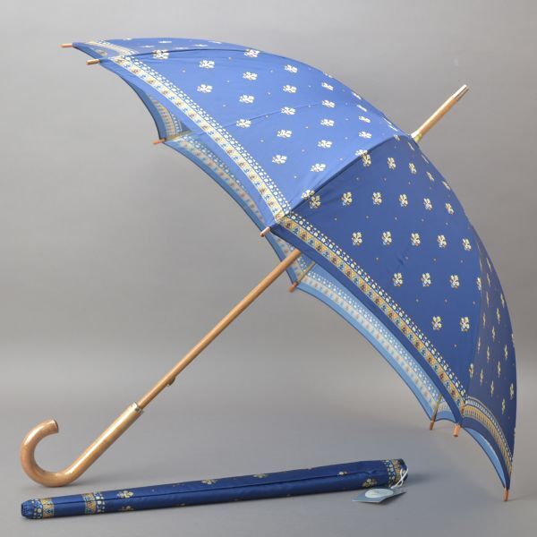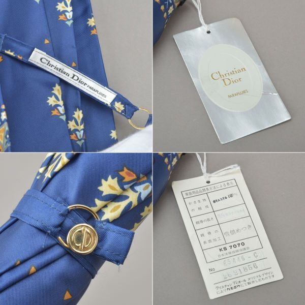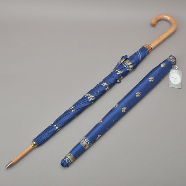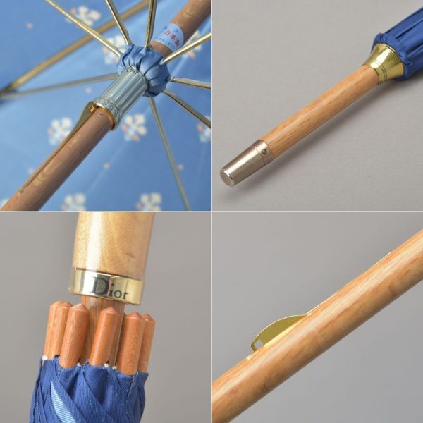 未使用 Christian Dior ディオール 花柄 長傘 カバー付き スリム ブルー 親骨55cm ウッド 雨傘 雨具 アンブレラ /070910-15/k.e/k.d