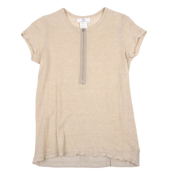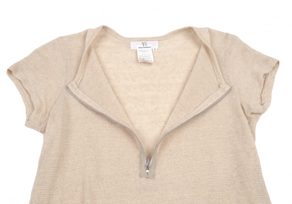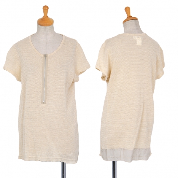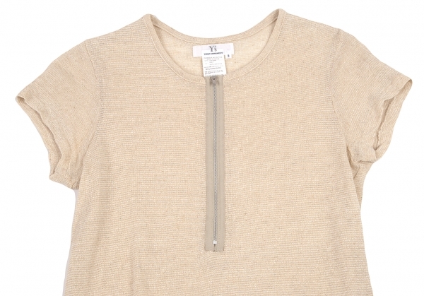 | ワイズY's リネン混ハーフジップ裾切替半袖トップス 生成り3 |
