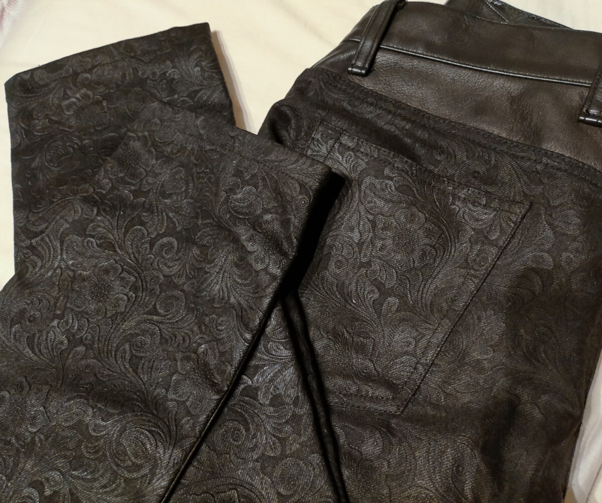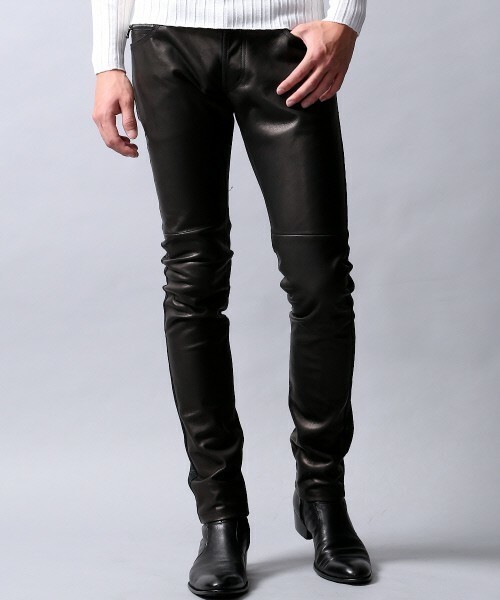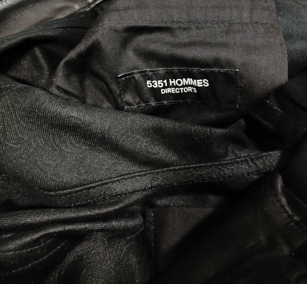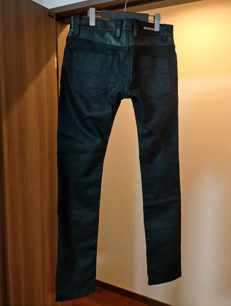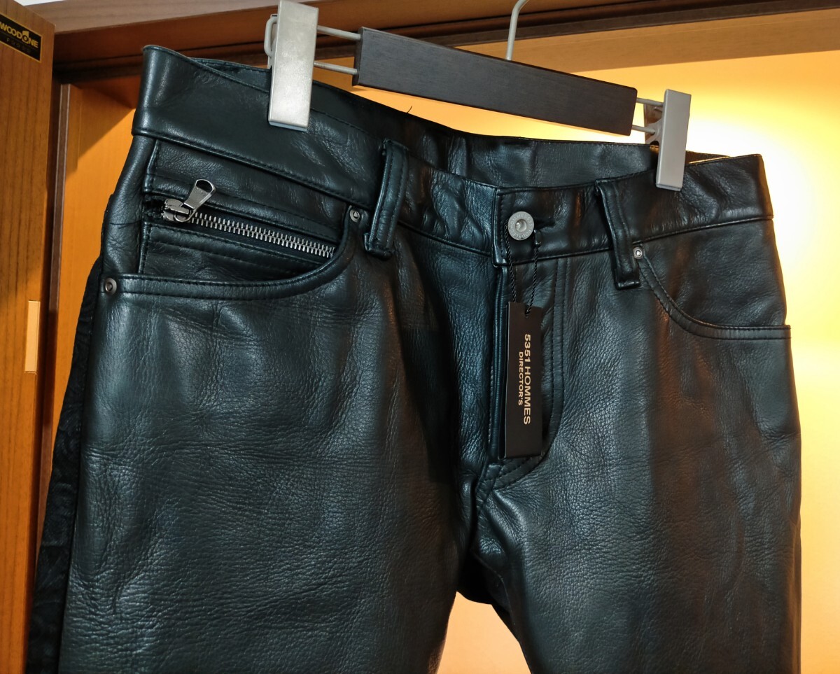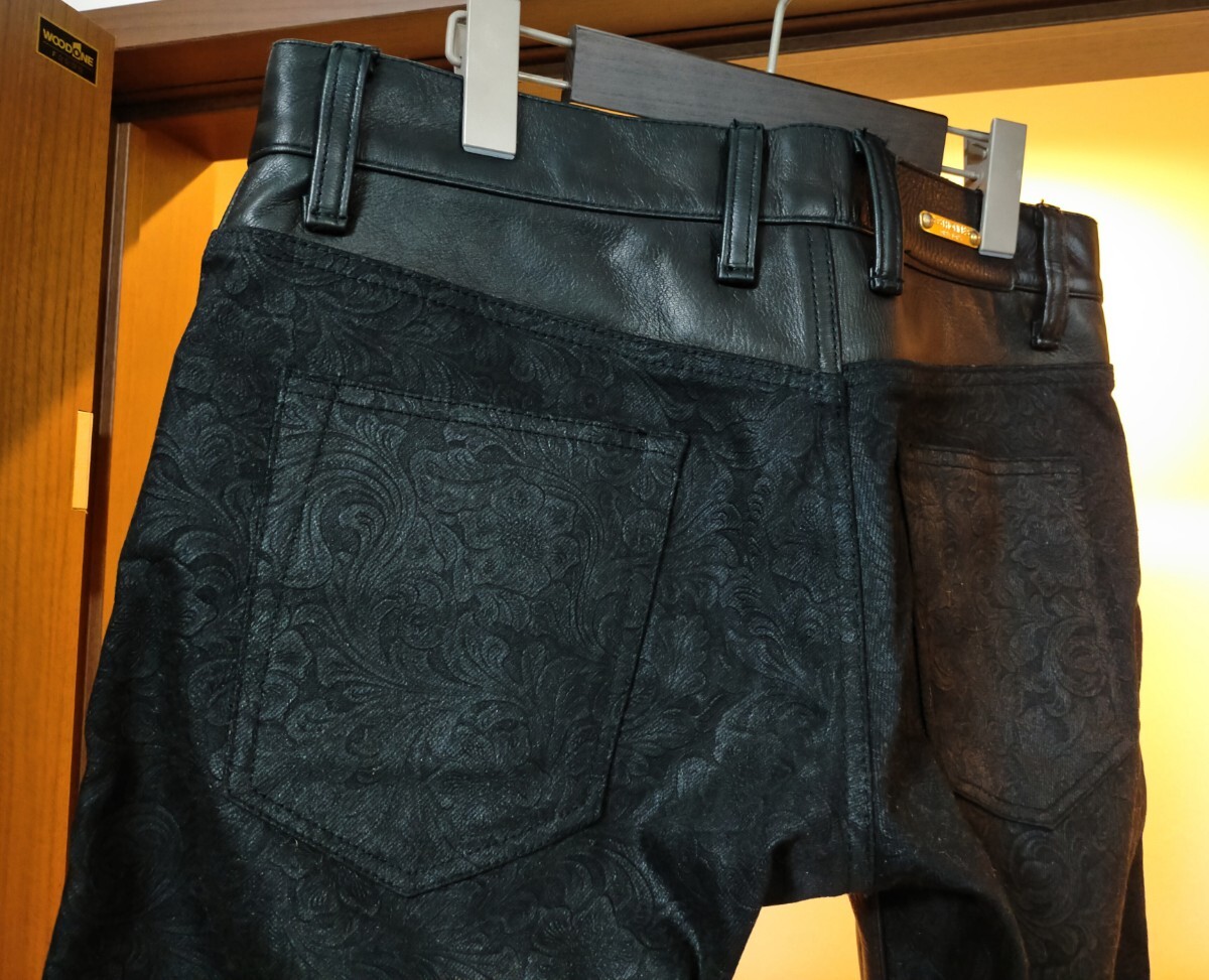 5351プールオムの高級ライン【DIRECTOR’S LINE】の最高級ディアスキン(鹿革)×フラワーデニムストレッチレザーパンツ(ブラック)です。