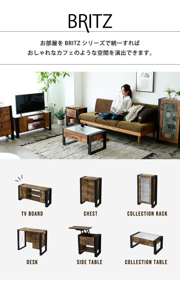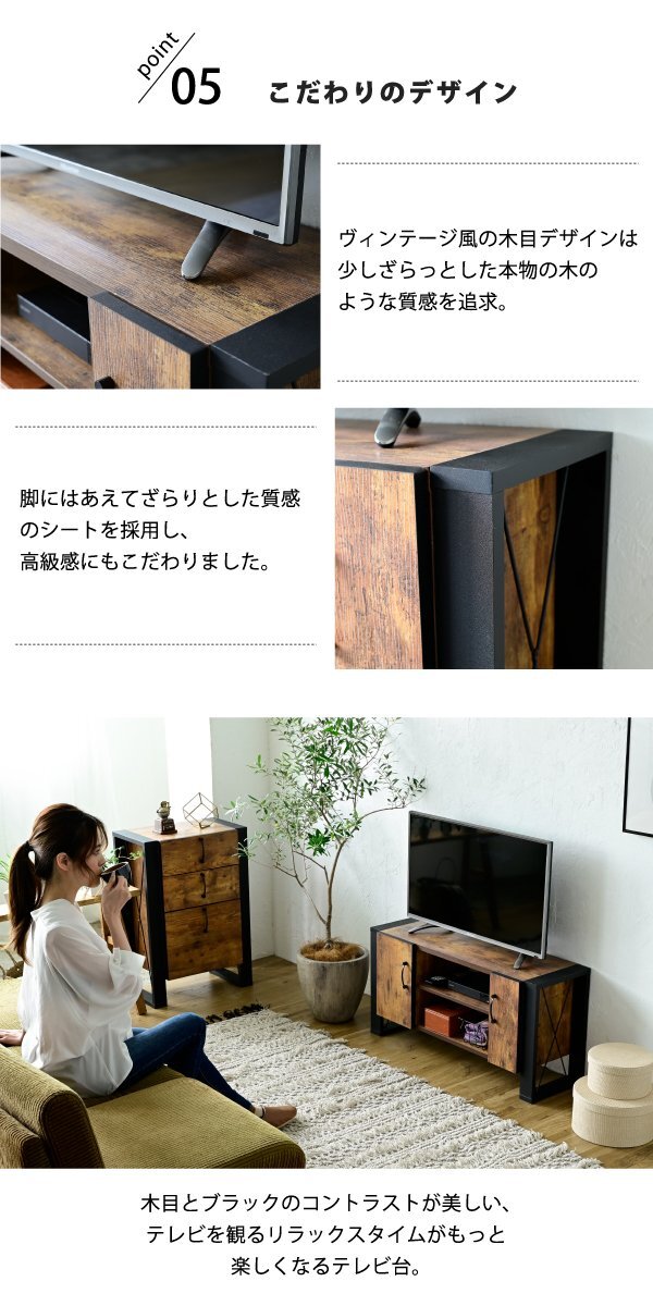 ※現在ご覧の商品ページはブラックxブラウンのご購入ページとなります。 ヤフオクの仕様上単一ページに複数バリエーションを掲載することができませんので、他バリエーションが希望の場合は別ページでご購入お願い致します。 ヴィンテージ風シートがおしゃれなブルックリンスタイルのテレビ台。 無骨すぎないデザインで男女問わずご使用いただけます。 可動棚で収納も柔軟に対応。 ※撮影時の小物は付属しません。 配達業者を指定いただくことはできません。 沖縄・離島への配送は別途配送料が必要です。 ※別途送料が発生する場合は後ほどご連絡させていただきます。 タイミングによっては在庫切れの場合があります。