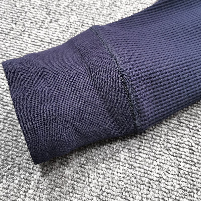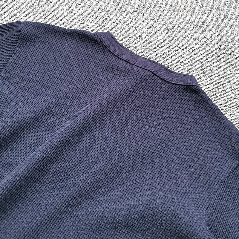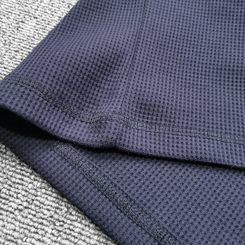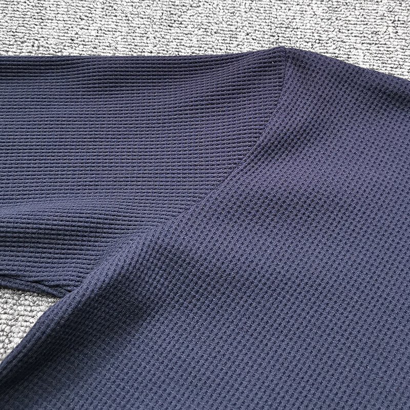 新品 欧米 ワッフル カットソー ニット ヘンリーネック 長袖Tシャツ メンズ 薄手 綿混 春秋 快適 無地 カジュアル スポーツ 紺 T5141-3XL