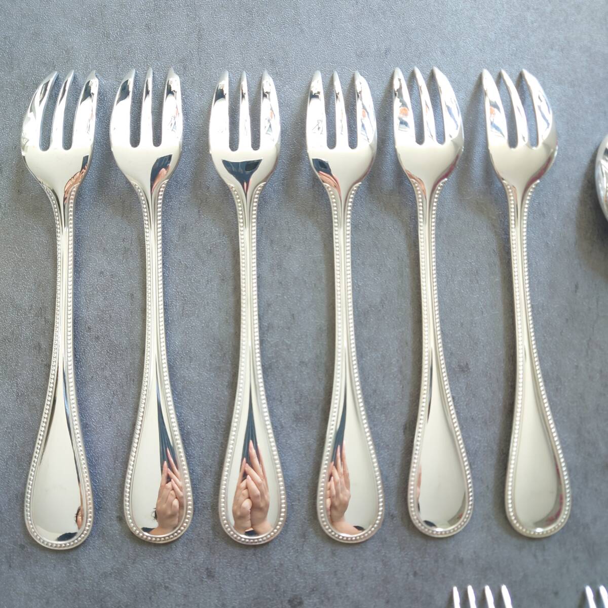 カトラリー同士の接触傷や使用に伴う小傷、お手入れによるスレなど少しだけありますが、状態良く美品のお品物と個人的には考えております。