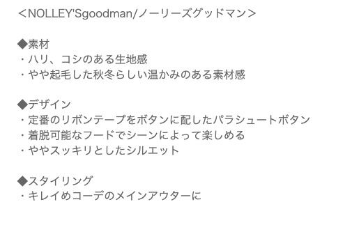 NOLLEY'S goodman 元々銀座に本社を構えていたブランドで、大阪だと梅田にお店があった大人向けのセレクトショップです。丈夫なパラシュートボタンが採用されています(画像8)。ビジカジ用アウターとしても使えます◎。状態良いです。定価24200円。寸法画像3参照。