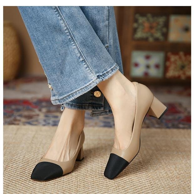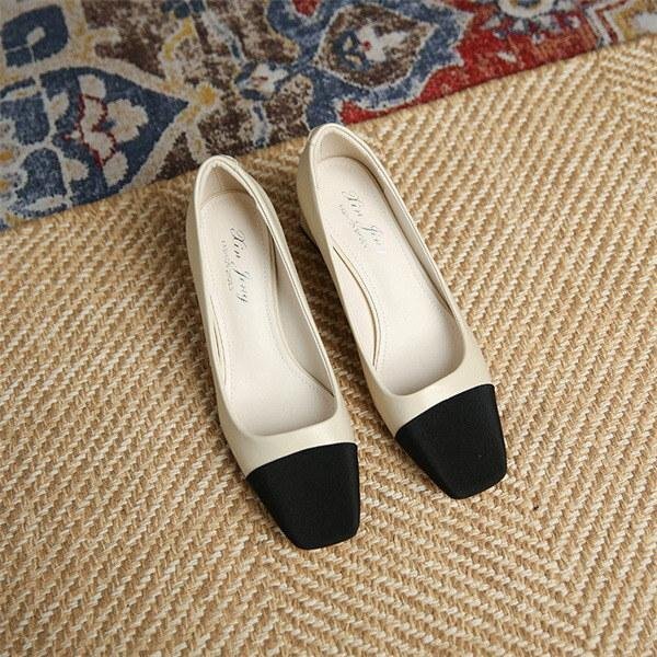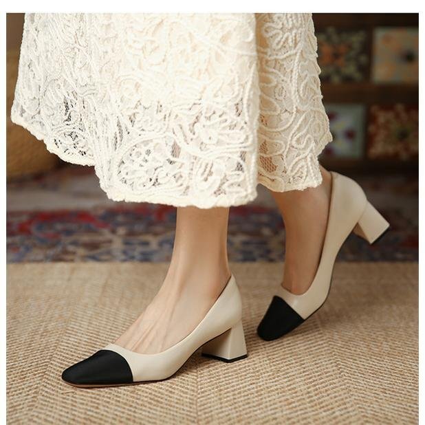 【22.5cm】走れるパンプス 痛くない レザー 歩きやすい 5.5cmヒール スクエアトゥ 走れる 冠婚葬祭 就活 オフィス 通勤 2色選択可