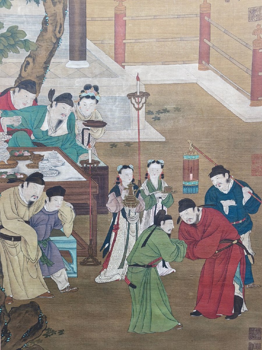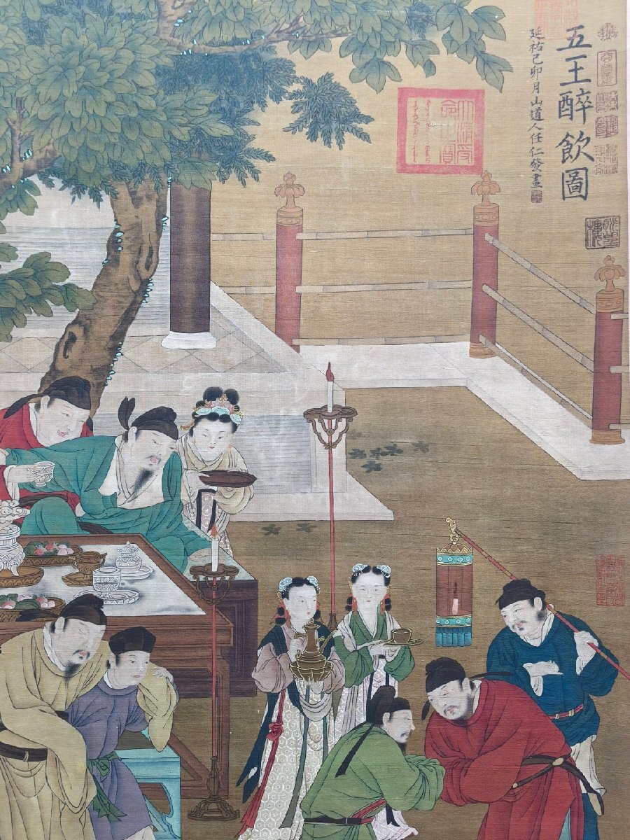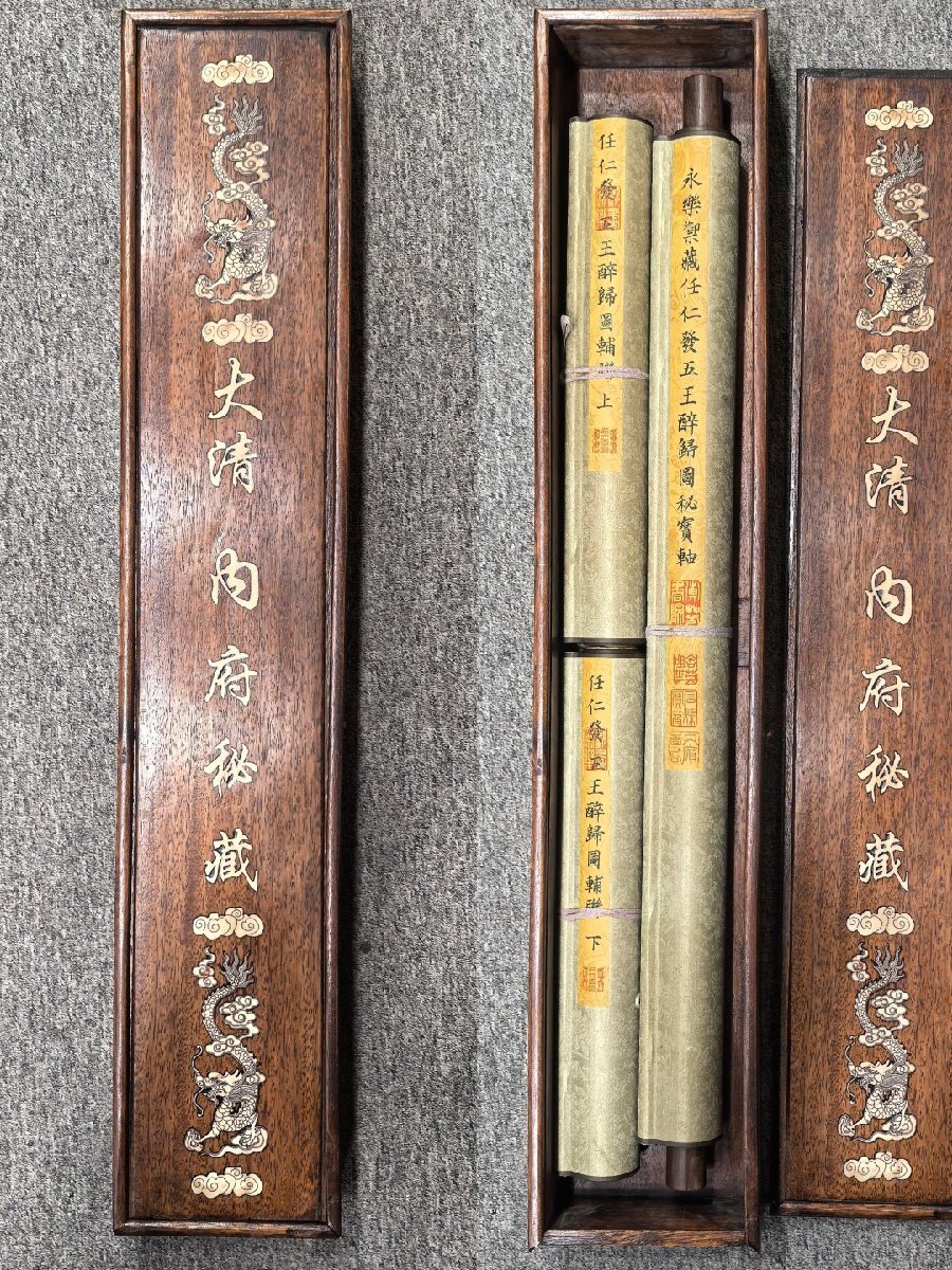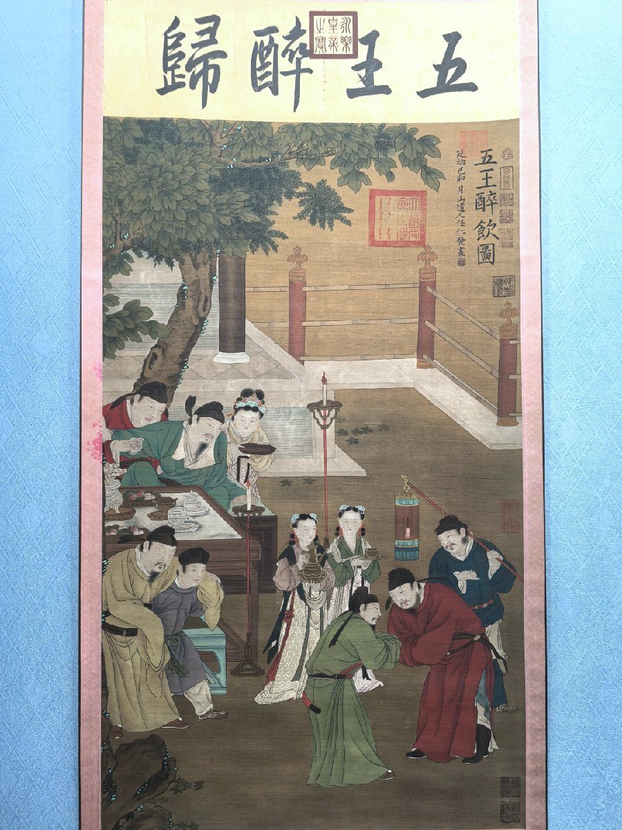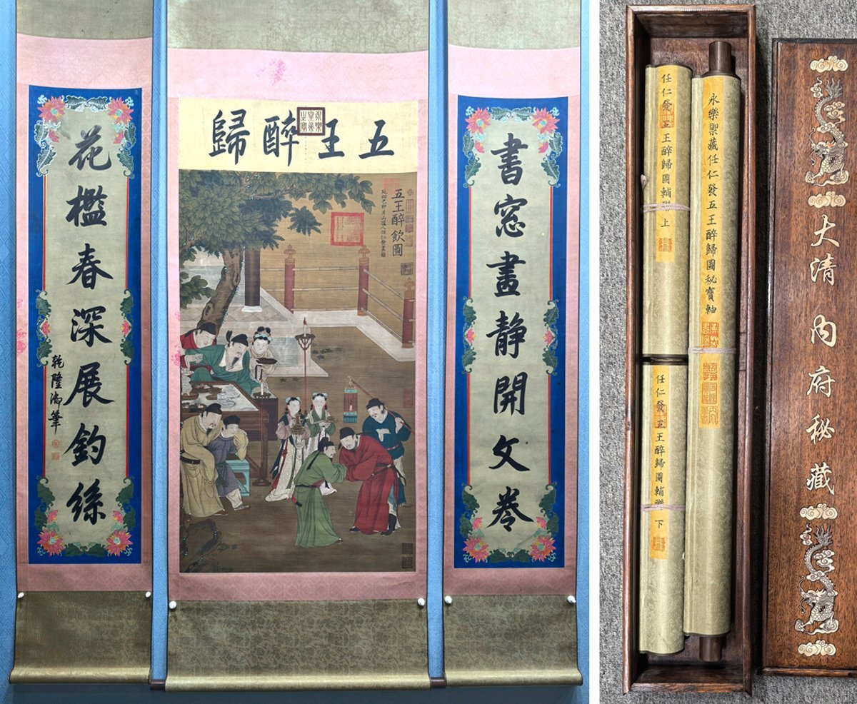【安】中国元時代画家「任仁発書」絹本「五王酔飲図中堂 書法対聯」掛軸 共箱 中国画 墨寶妙品 中国書道 古美術 412 サイズ(約寸) |
