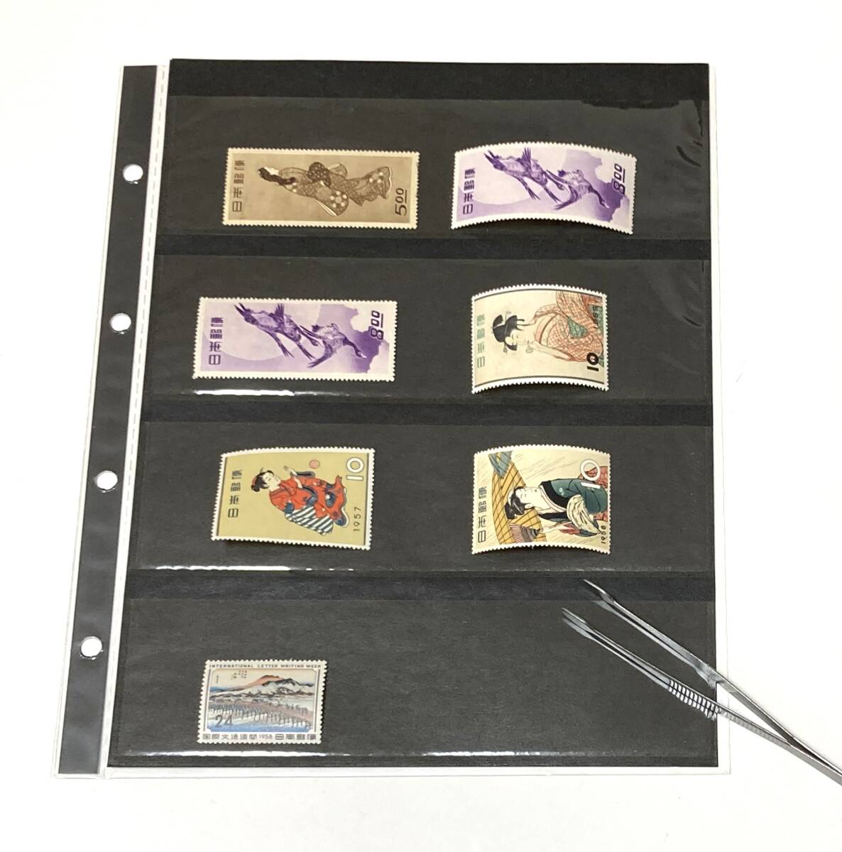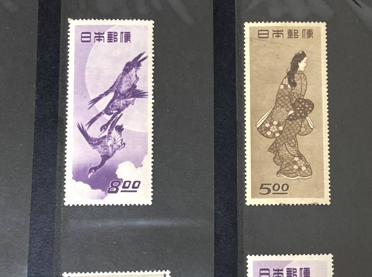 切手趣味週間(月に雁、見返り美人 他) と 国際文通週間(京都) 未使用 7枚 送料込み