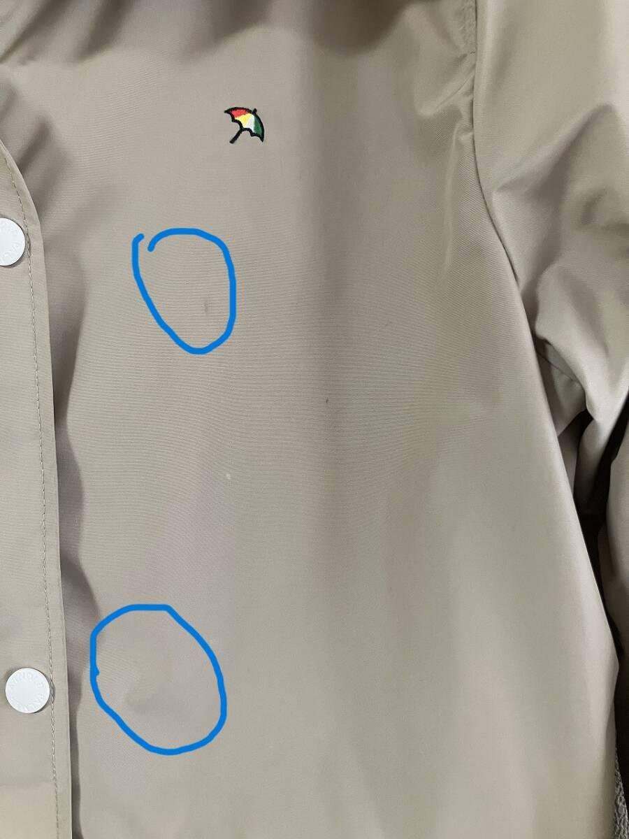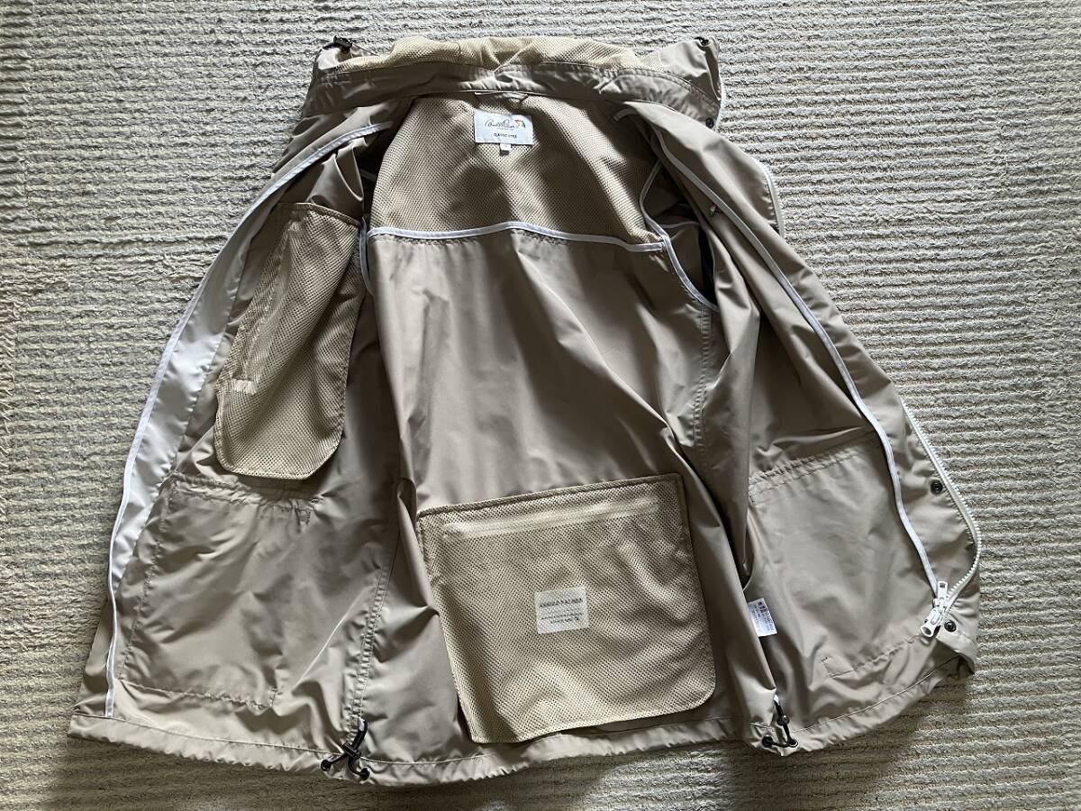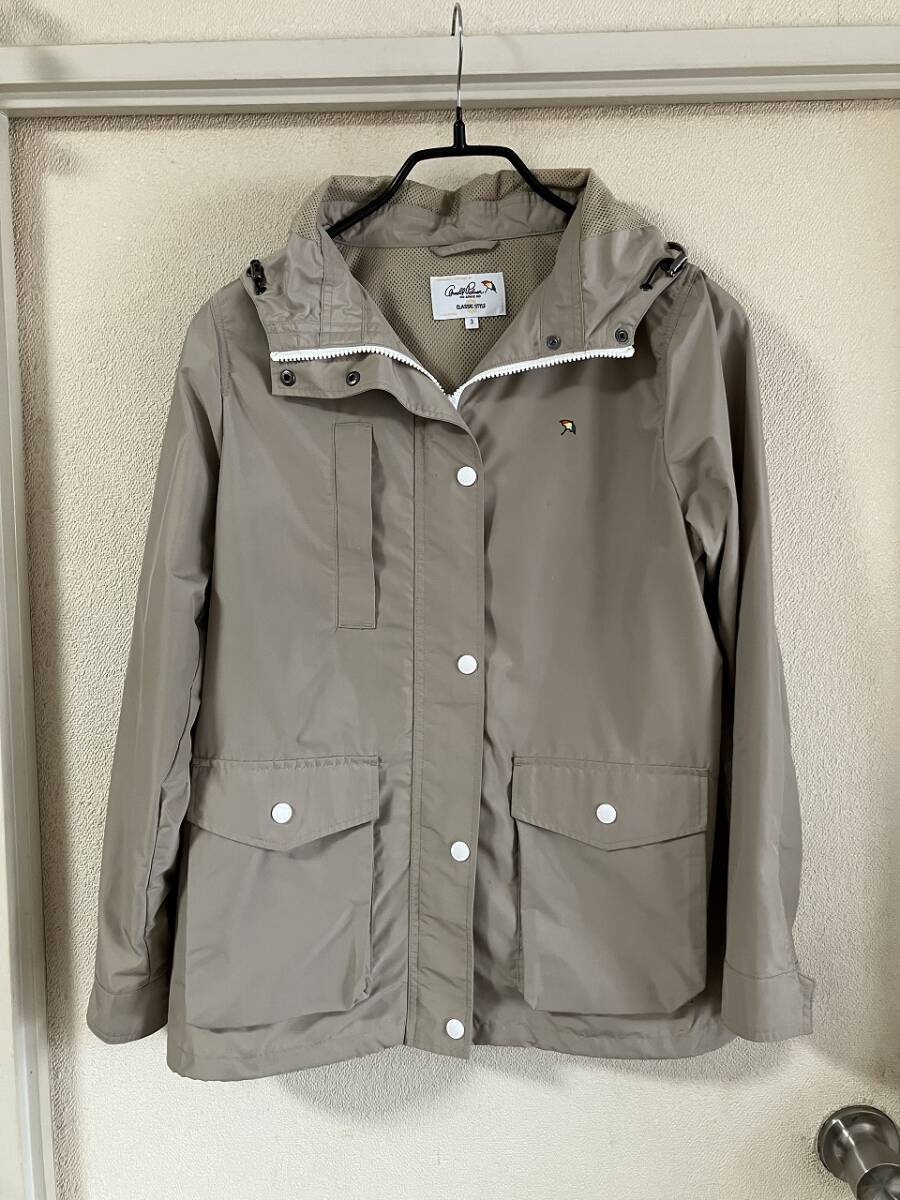 | レナウンのお品です。素材はポリエステル100%。サイズ表記は3。実寸は、平置きで肩幅40cm、身幅51cm、着丈65cm、袖丈60cm。素人の採寸ですので、多少の誤差はお許しください。ポケットはボタンを開けずに横から手が入ります。また、ポケッタブルで小さく収納できるので、旅行などに便利です。 | |||
