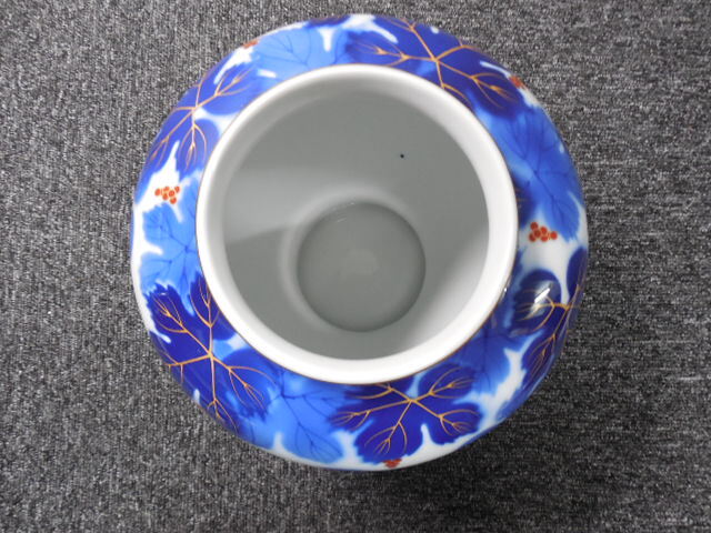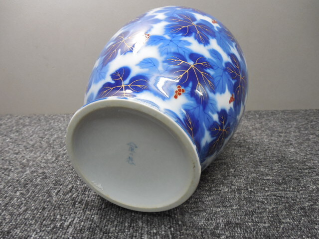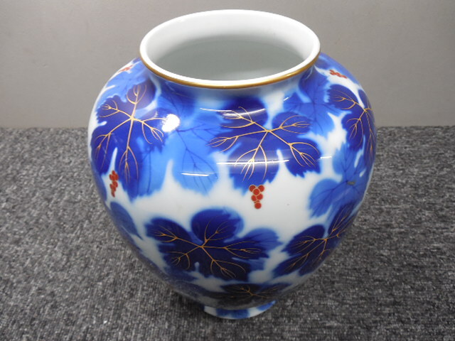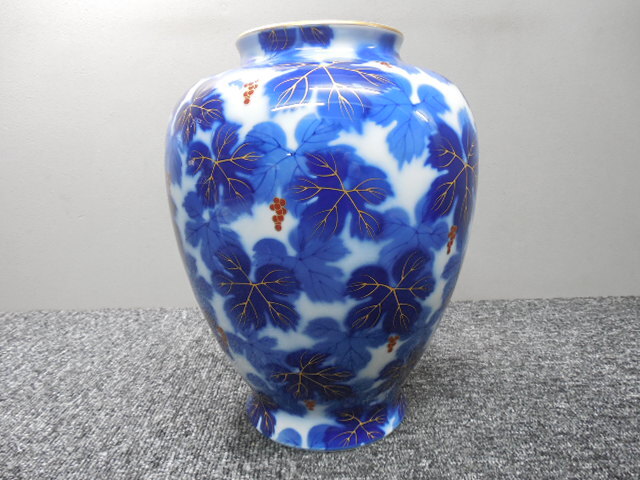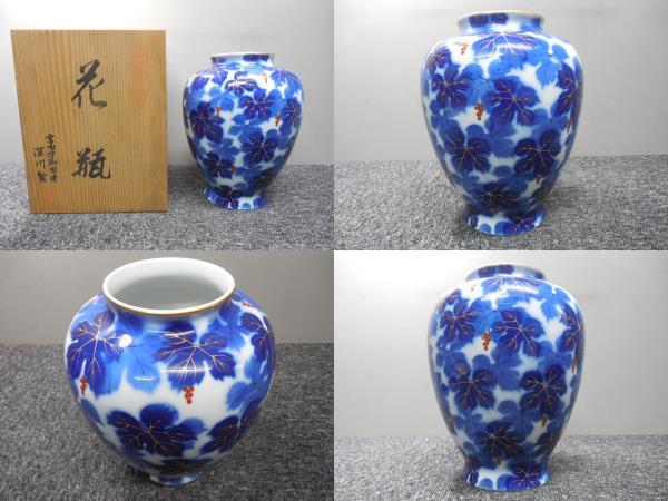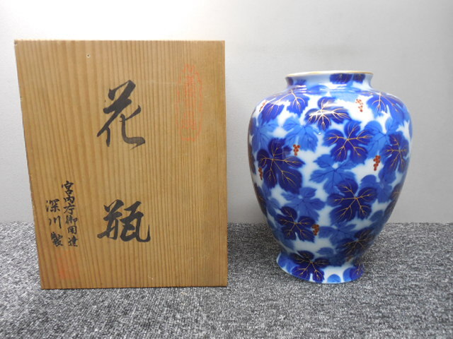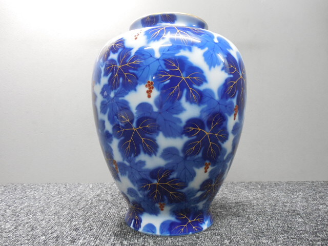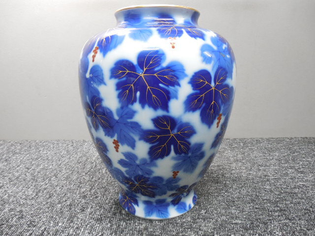深川製磁・高級・花入れ・花瓶・葡萄・ぶどう柄 (未使用品かと)  /  ビンテージ・共箱あり  サイズ・全高26×胴幅20×口径10.5㎝