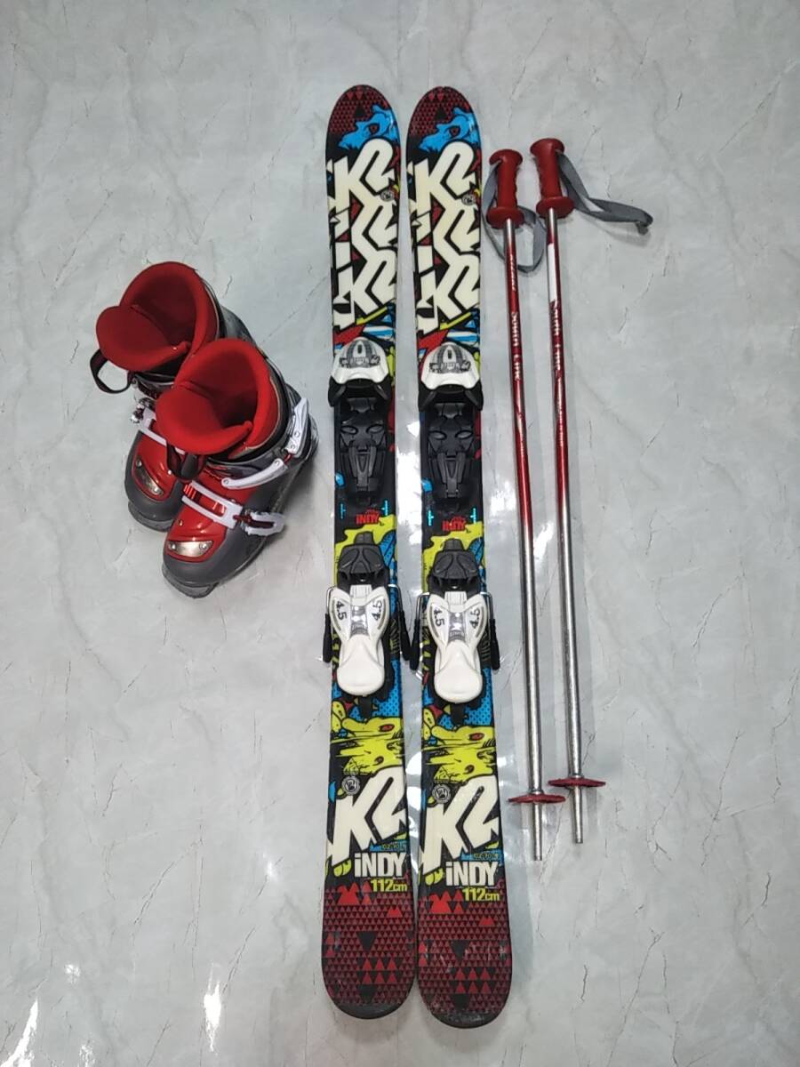 板 K2 112cm ブーツ Hart 21.0cm 254mm ビンディング MARKER ストック KIZAKI 86.5cm 小学生 ジュニア 子供 4点セット