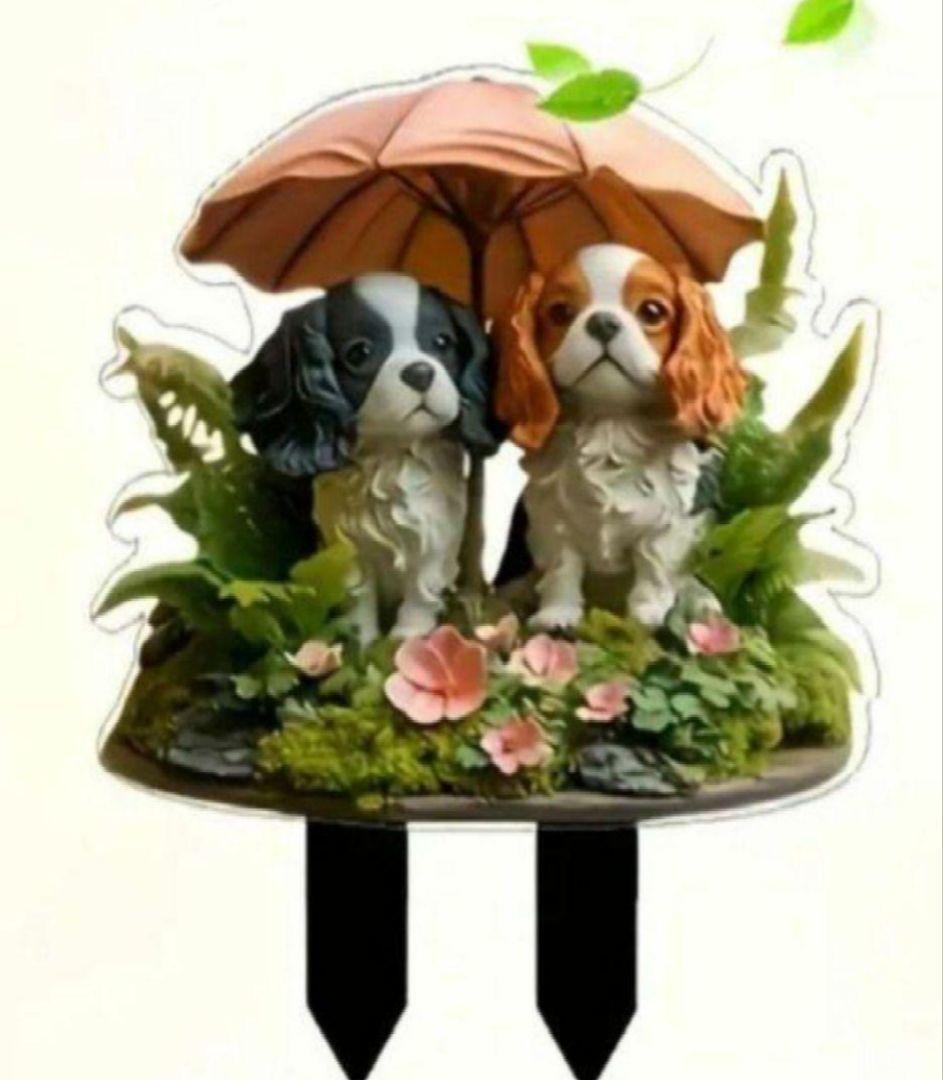 ● 愛らしいキャバリアのシルエットが描かれた、屋外用アクリルプレートのガーデンオーナメント。