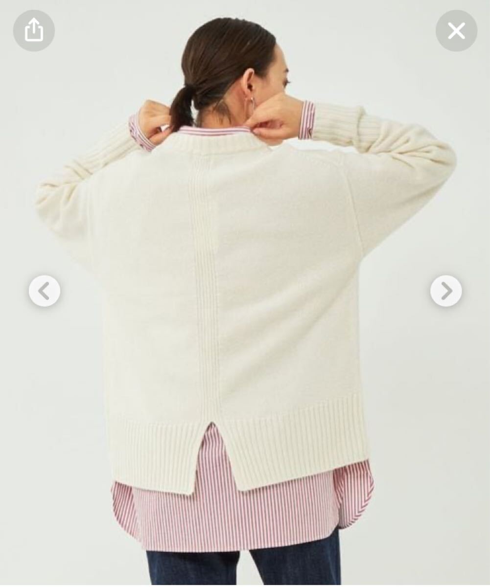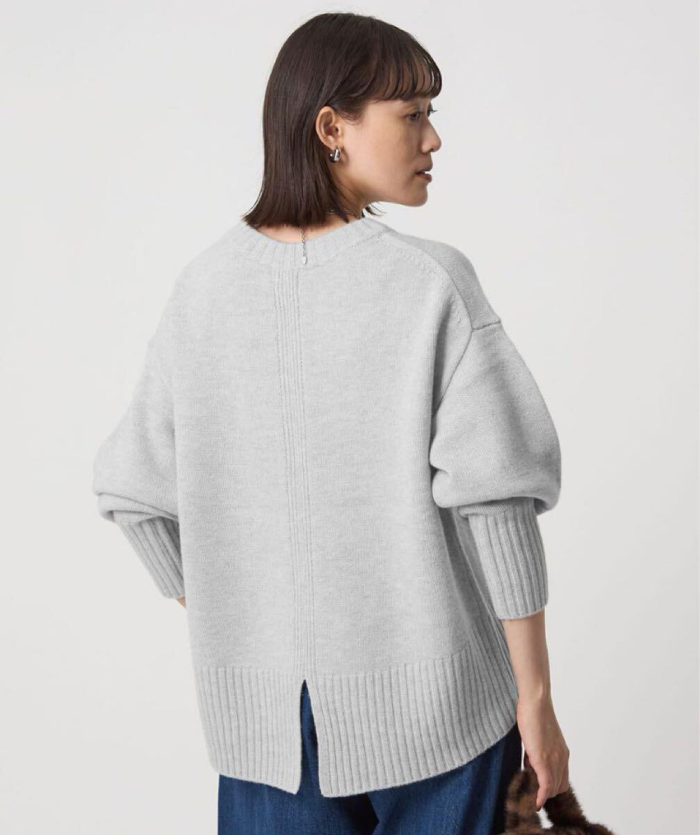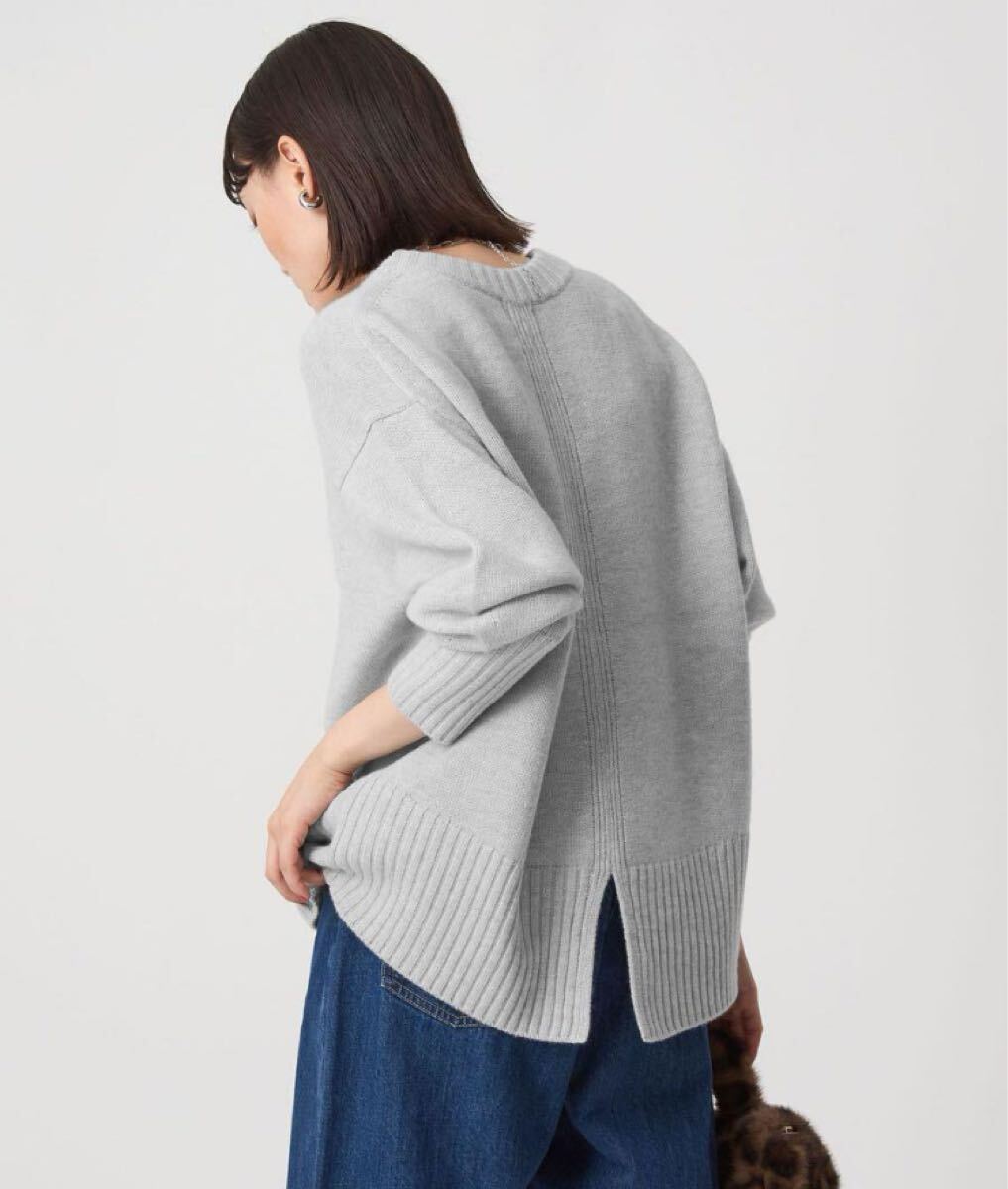 ■デザインキレイめな着こなしはもちろん、カジュアルダウンさせた着こなしとも相性の良いクルーネックニットです。レイヤードスタイルにも重宝する前後差のあるデザインとほどよく身体から泳ぐサイジングが◎