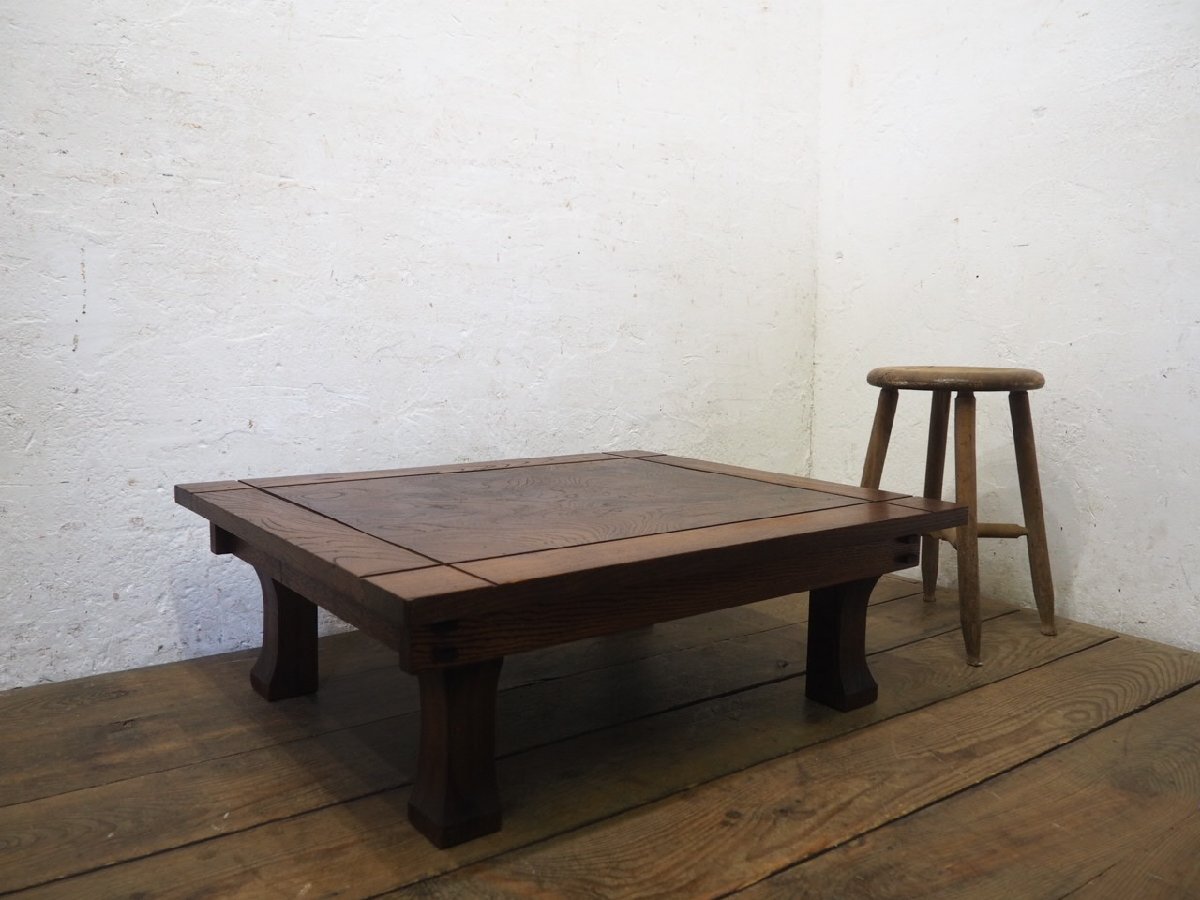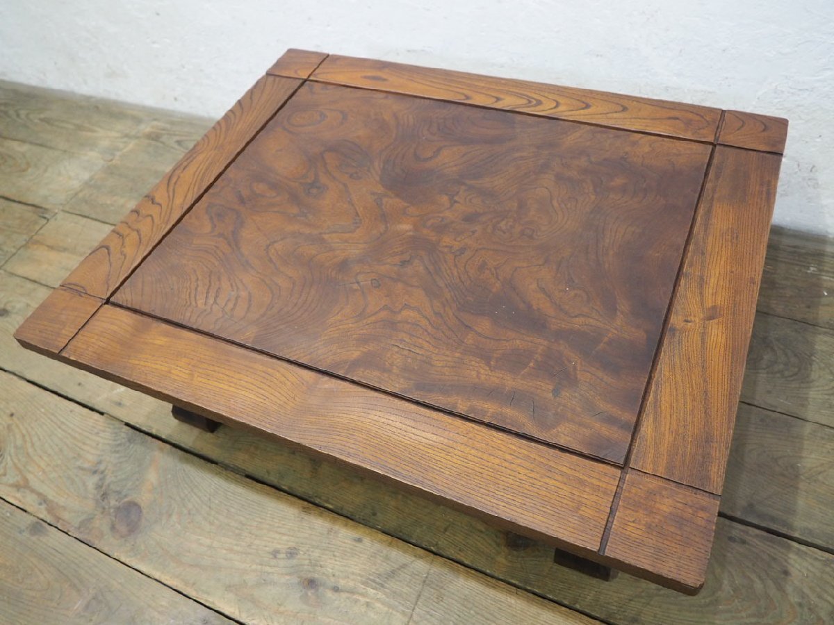 タS0757◆天板W79cm×D66cm◆折りたたみ式◆欅の一枚板◆レトロな古い木製ローテーブル◆ケヤキ 文机 座卓 ちゃぶ台 アンティークI笹4
