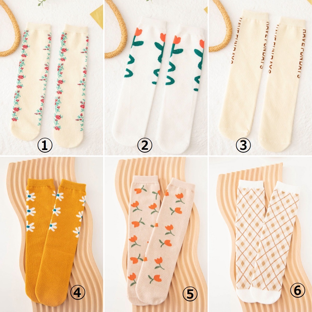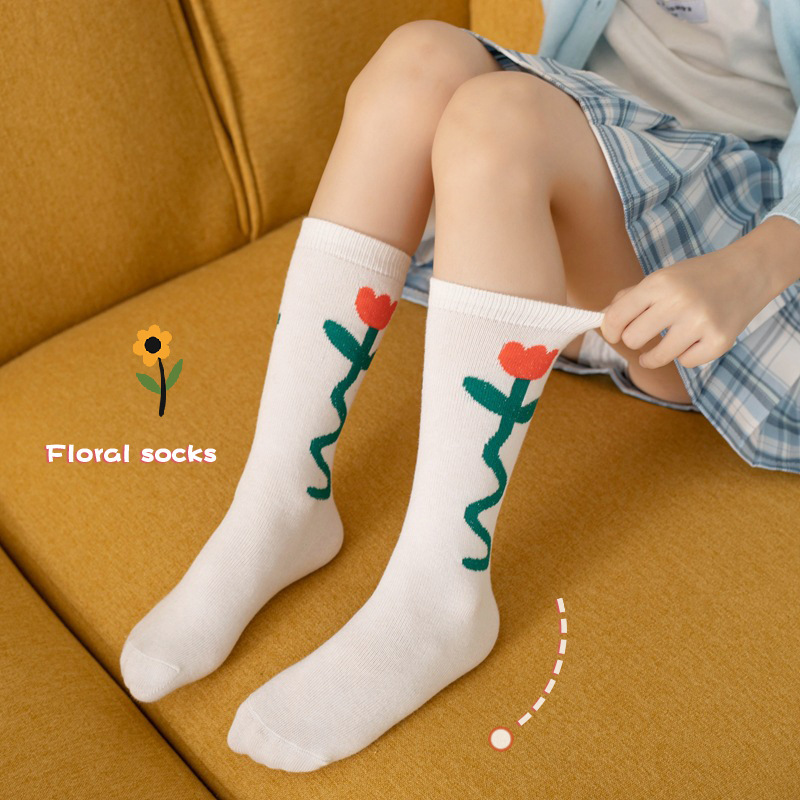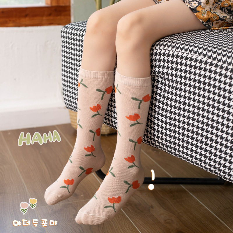 花柄などかわいいデザインのキッズ&ベビー用かかとなしハイソックスです。