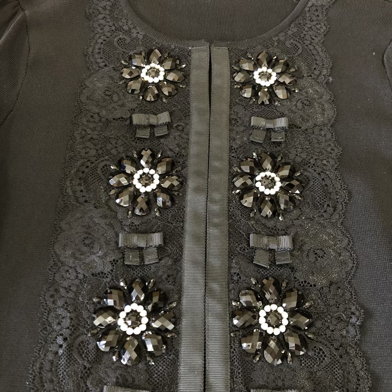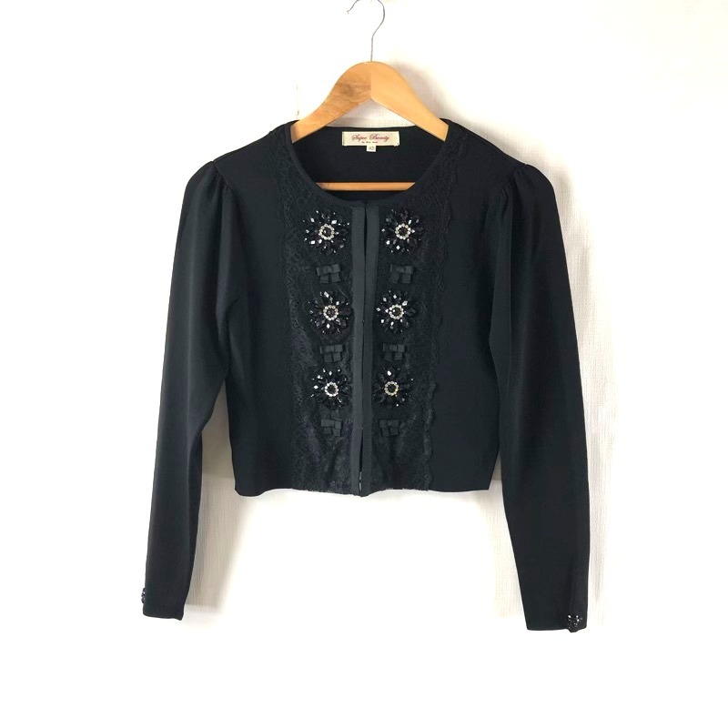 | 商品名 | スーパービューティー super beauty カーディガン 長袖 レース ビジュー 装飾 リボン 黒 42サイズ 963761 |