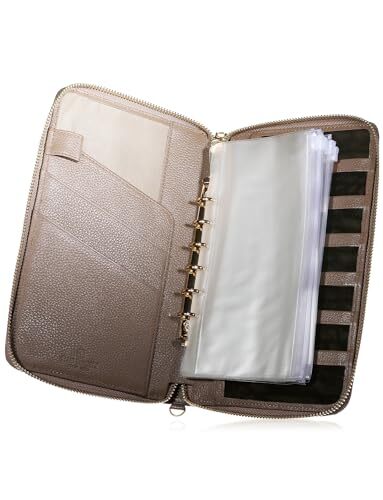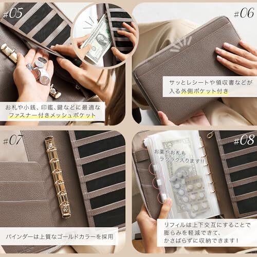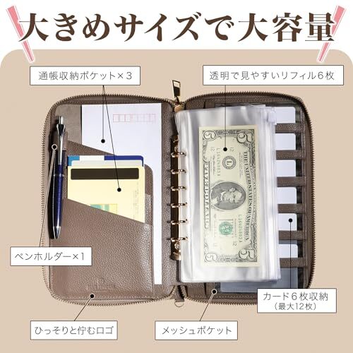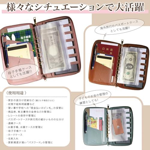 [BLUE SINCERE] 家計管理 ケース 本革 リフィル 6枚付き 大容量 B6サイズ 母子手帳 パスポート 通帳 お薬手帳 ポーチ 袋分け クリアファイル 持ち運び / KKC1