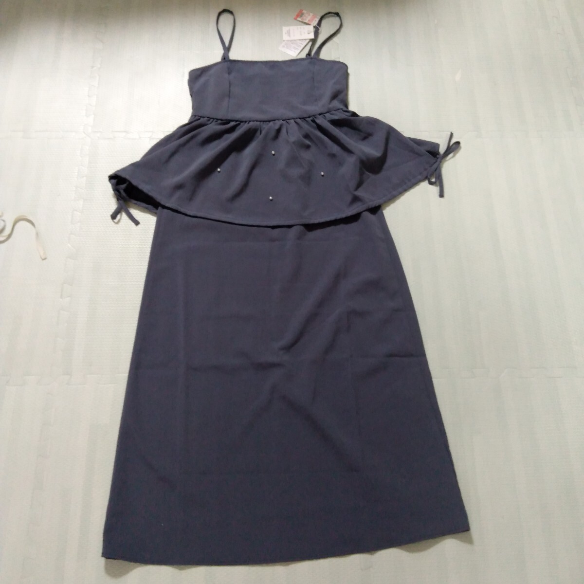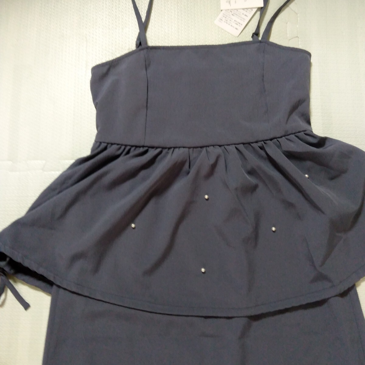 新品タグ付きです。色は黒、サイズはM、着丈は肩紐の部分で調節可能ですが、128cm横幅37cmくらいです。