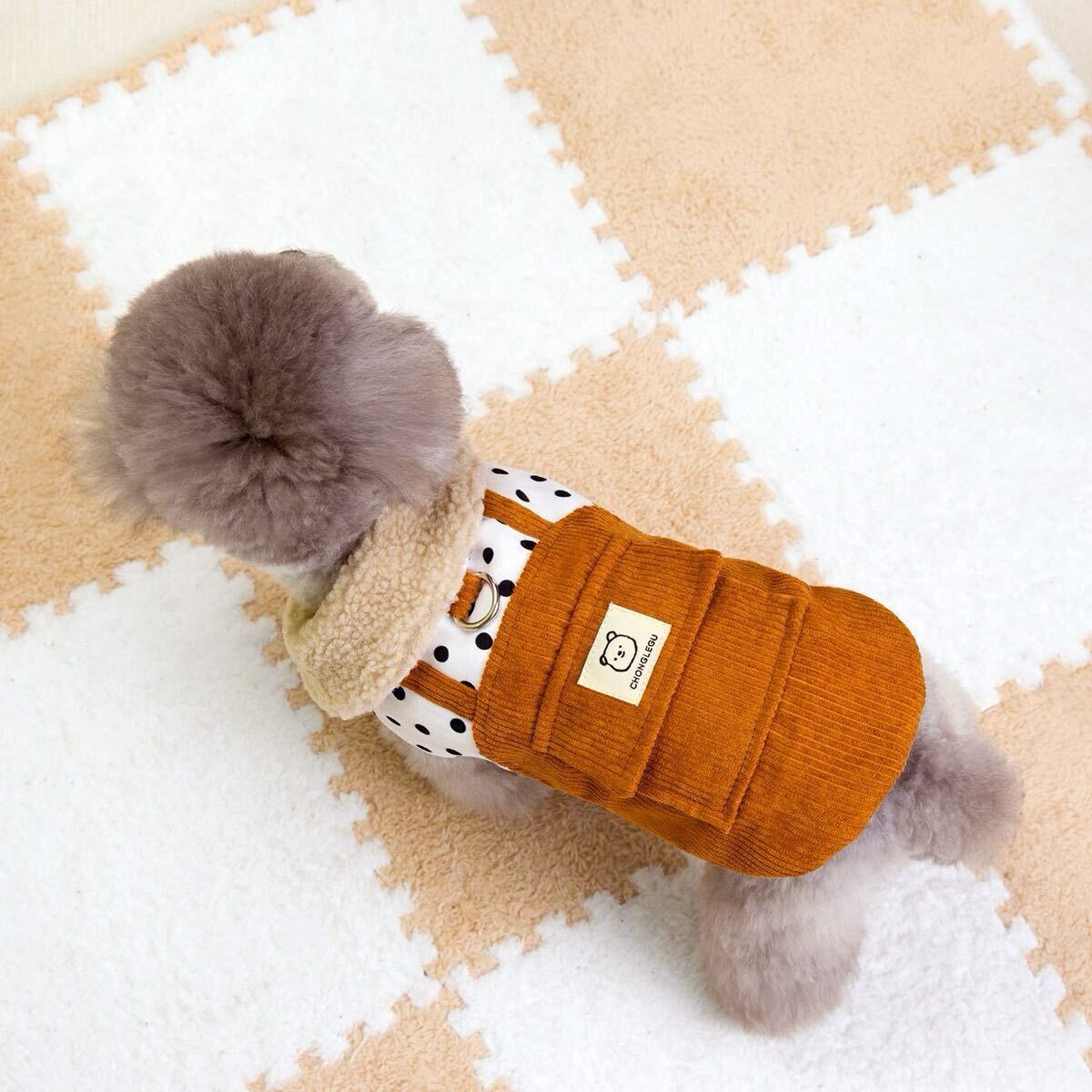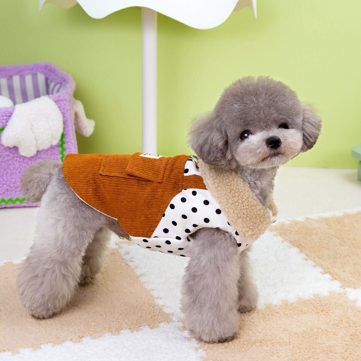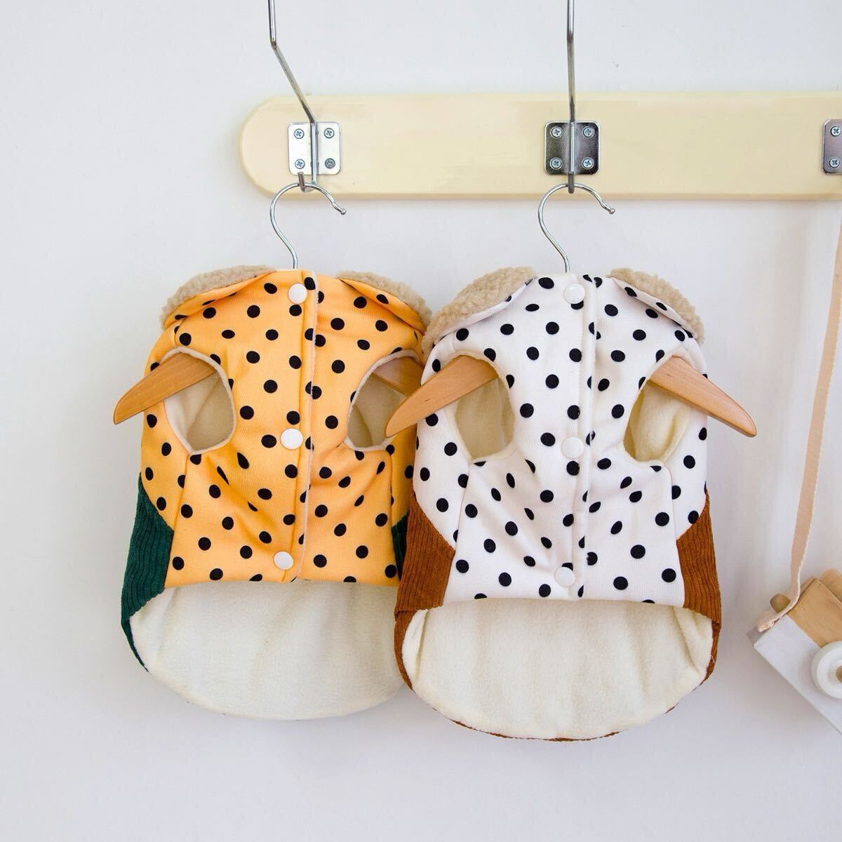 モコモコの襟元とドット柄がかわいいですね。