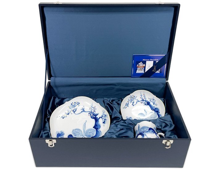 商品詳細 【 商品名 】Meissen マイセン ブルーオーキッド カップ ソーサー プレート 1客セット 2001年 限定 モーニングセット 金彩 金縁 西洋磁器 箱付