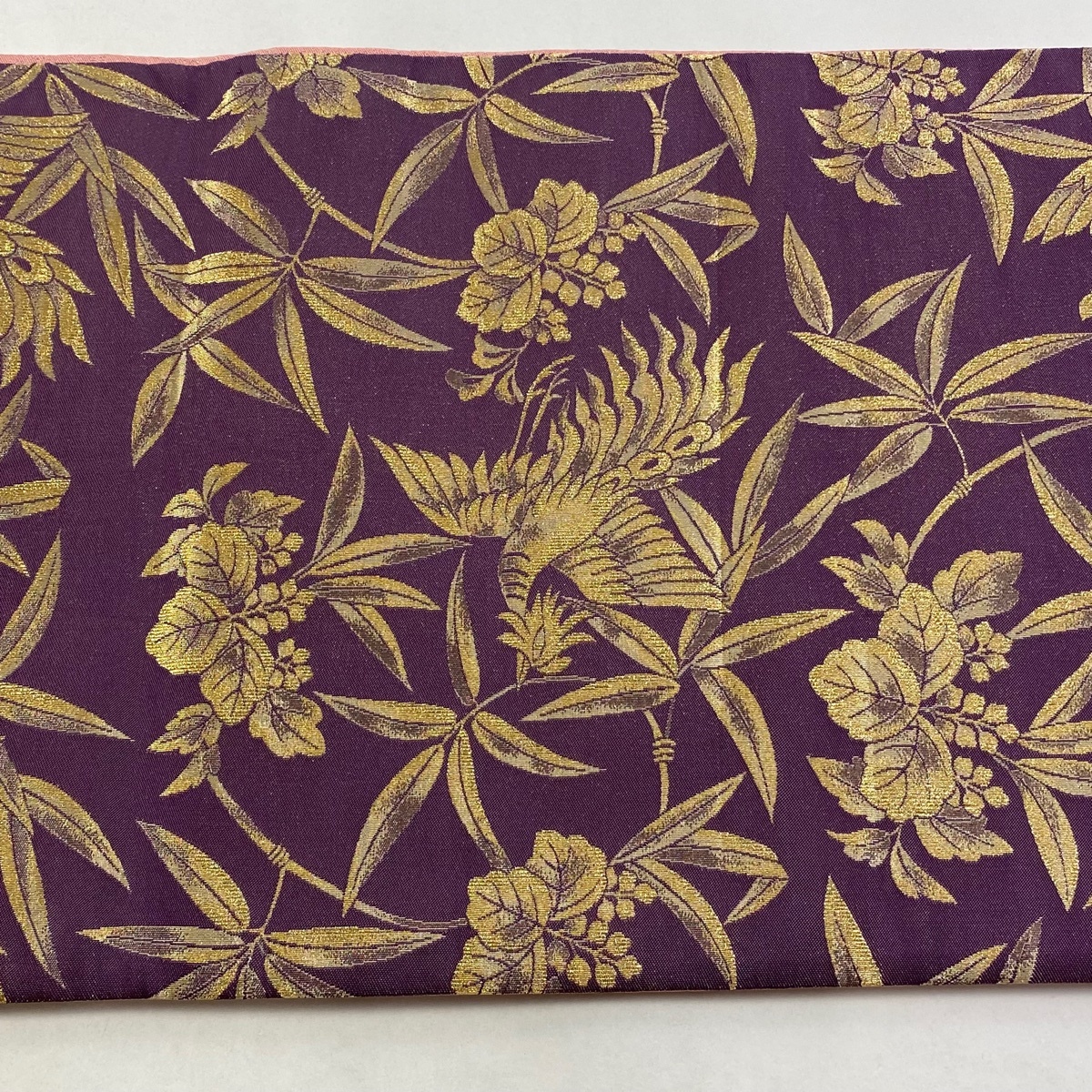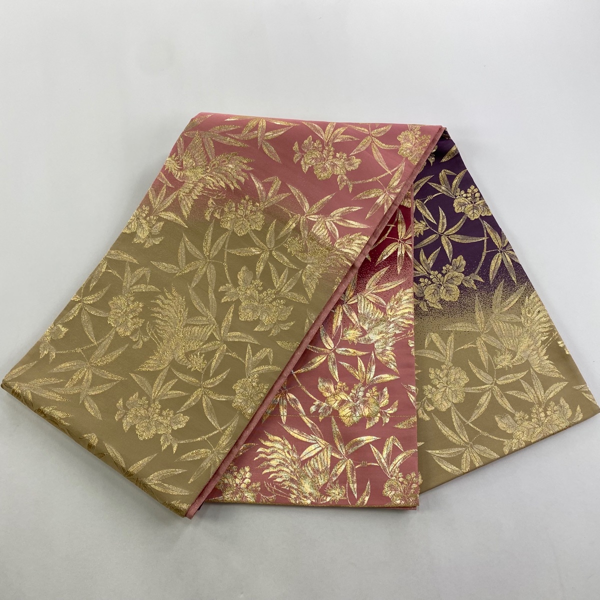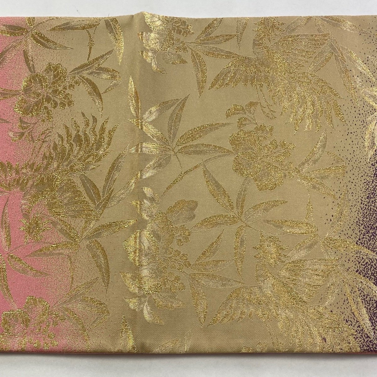| 袋帯 美品 秀品 関西仕立て 草花 鳥 金糸 ピンク 全通 正絹 【中古】 |