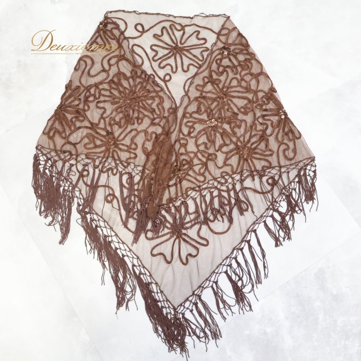 | 【商品名】フラメンコ衣装 シージョ ピキージョ 【サイズ】 平置き実測:横幅(布部分)約148cm、高さ(フレコ含む)約77cm、フレコ長さ(網目含む)約12cm ※実測の為、多少の誤差はご了承ください ※胸元が縫ってあります。 ------------------------------------ 【ポイント】 ▽茶色のシージョ ▽花柄×スパンコールラメがかわいい ▽透け感のある衣装 ------------------------------------ |