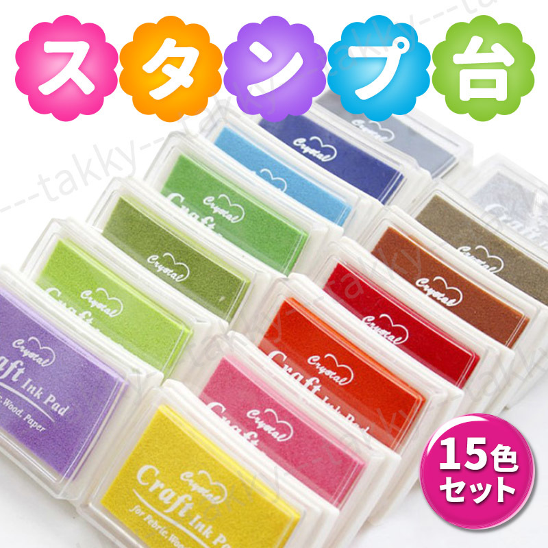 | スタンプ台 スタンプパッド 15色 セット まとめ カラフル インク 紙 布 木 スタンプパット 15個 | ||||