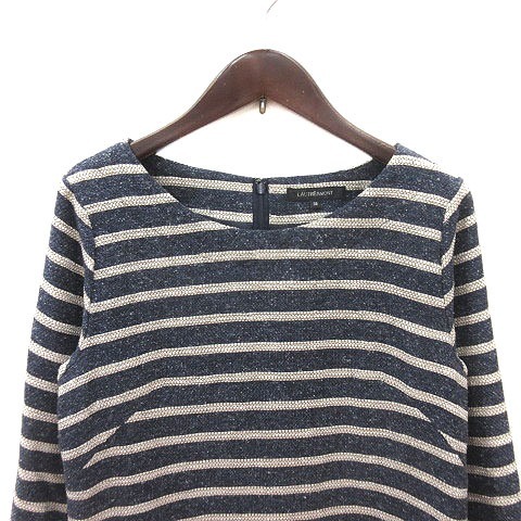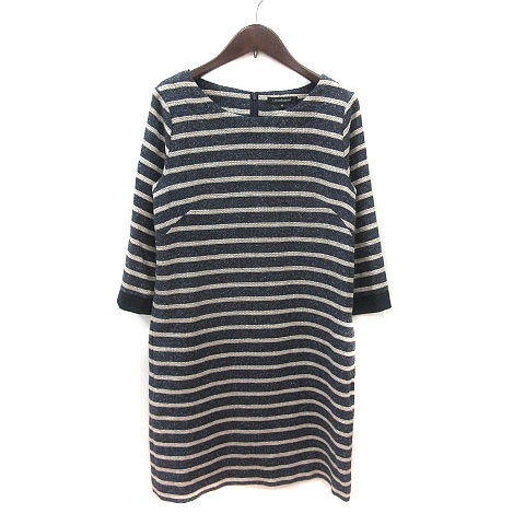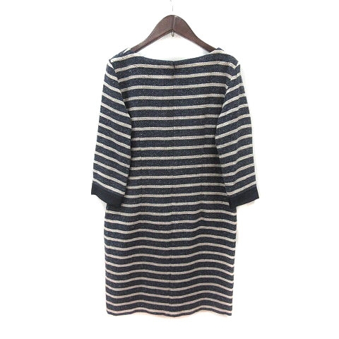 ロートレアモン LAUTREAMONT ワンピース ひざ丈 ボーダー 七分袖 38 紺 ネイビー 白 アイボリー /MS レディース
