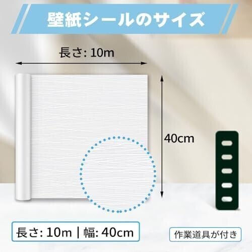 【壁紙シール 仕様】壁紙 おしゃれ 白 (長さ10m x 幅40cm)道具付き!リメイクシート 表面エンボス加工でおしゃれなホワイトを再現!おしゃれな質感と北欧感!人気の貼ってはがせる 壁紙ランキング!