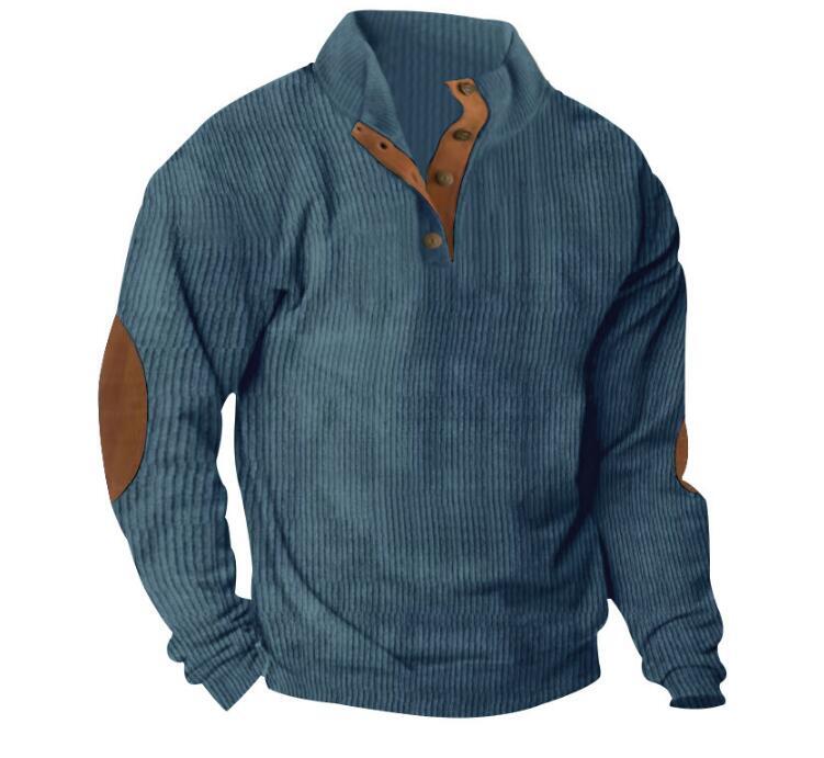 新作トレーナー メンズ長袖 ハーフボタン エルボーパッチ トップス ゴルフウェア 無地トレーナー長袖トレーナー春秋冬S-3XLサイズコーヒー