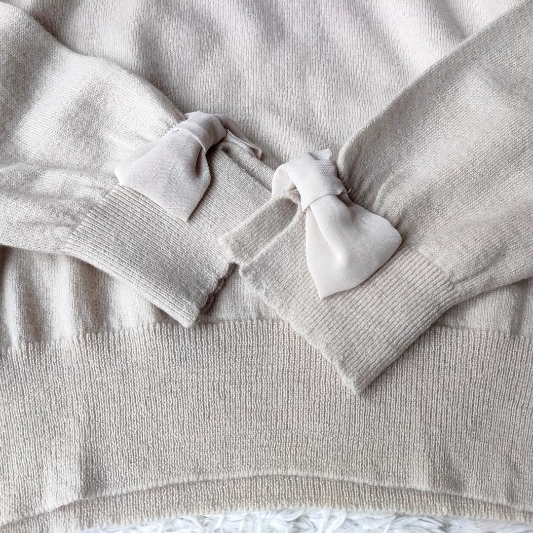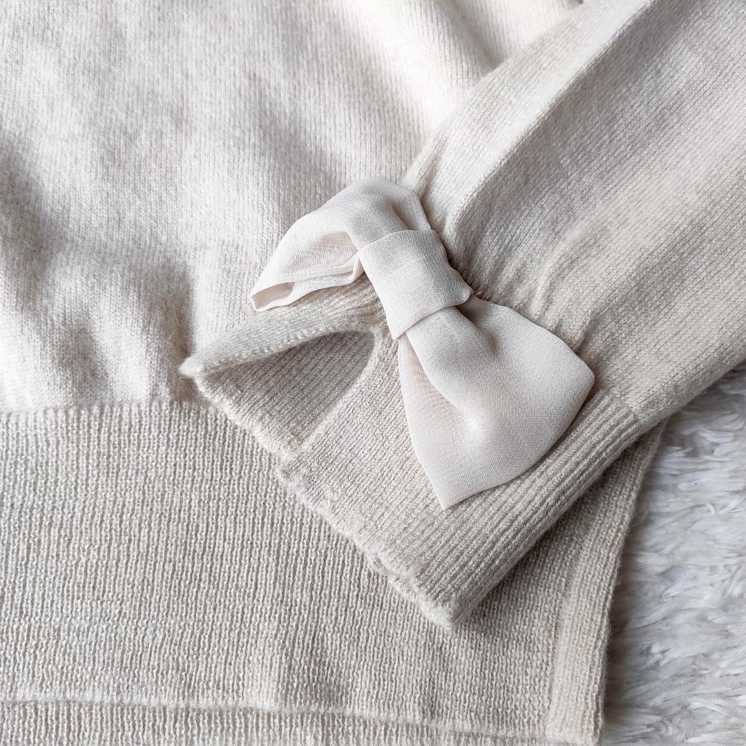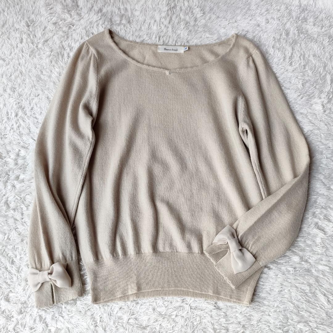 Couture Brooch クチュールブローチ カシミア混 リボン ニット 38 M カシミヤ10% 羊毛90% 薄手セーター