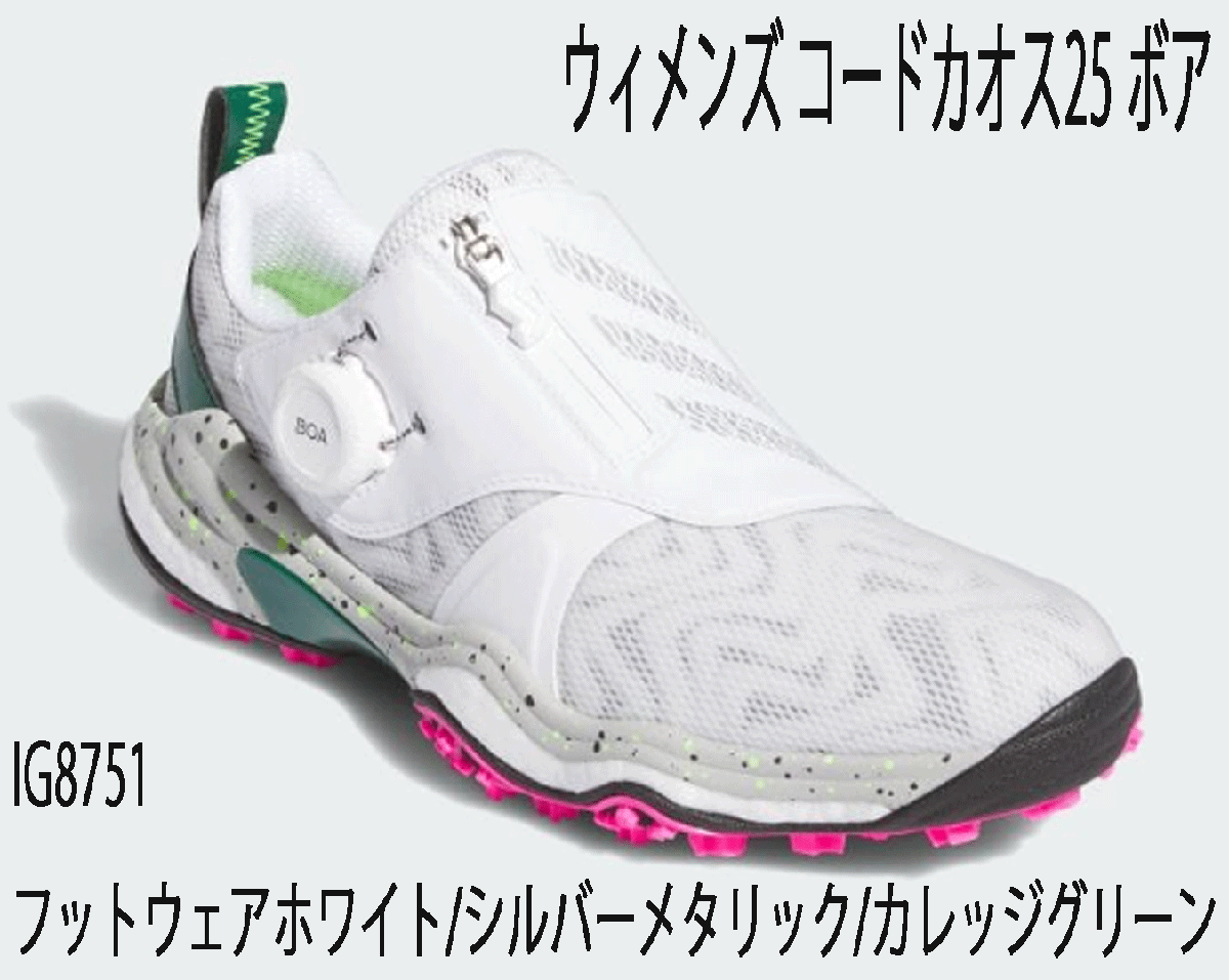 新品■アディダス■2024.7■ウィメンズ コードカオス-25-ボア■IG8751■ホワイト/シルバーメタリック/グリーン■22.5CM■スパイクレス■