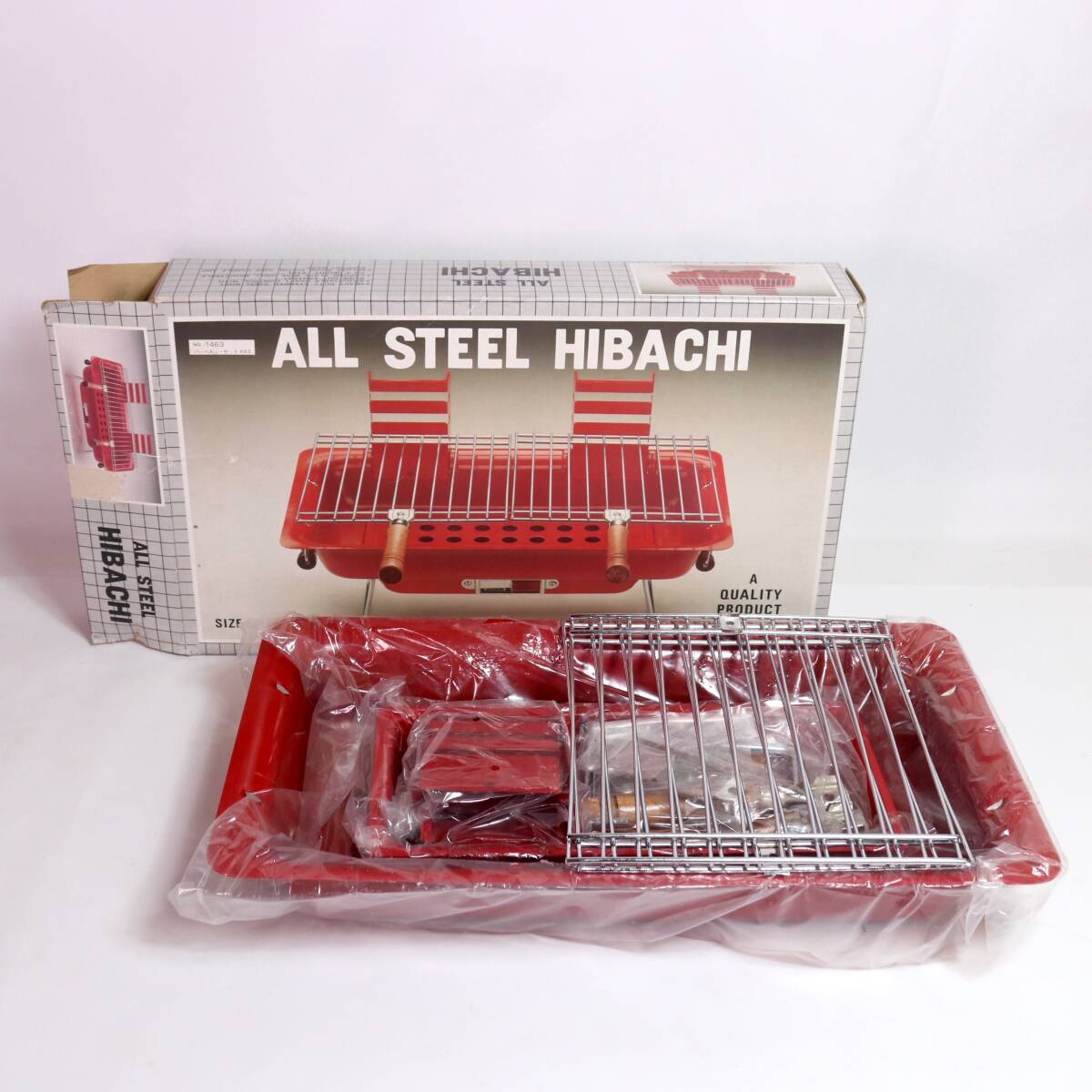 C1143 未使用 ALL STEEL HIBACHI キャンプ用品 コンロ 赤色 バーベキュー 焼肉 炭火 箱入り 保管品