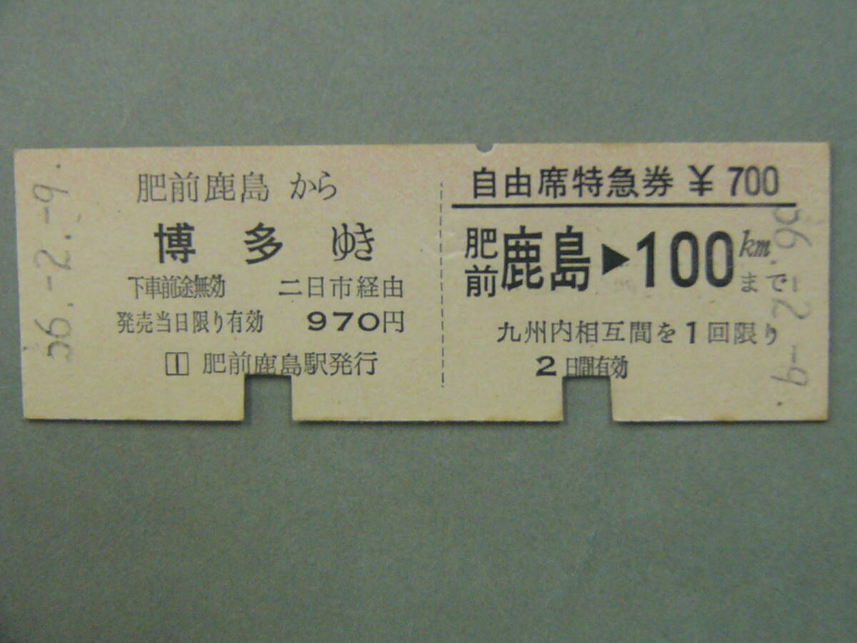 1982.肥前鹿島-博多 乗車券/自由席特急券