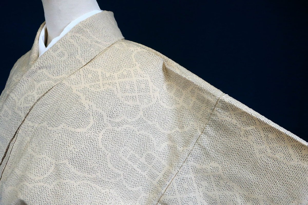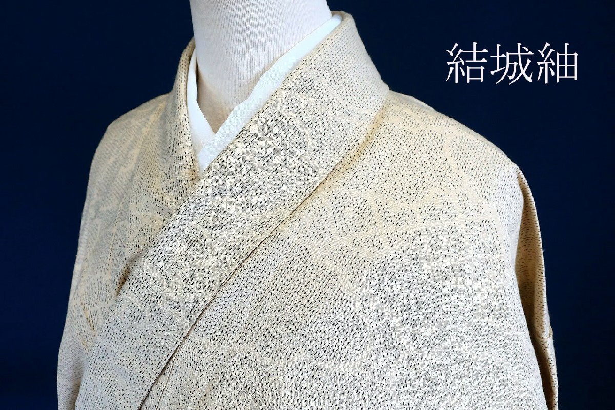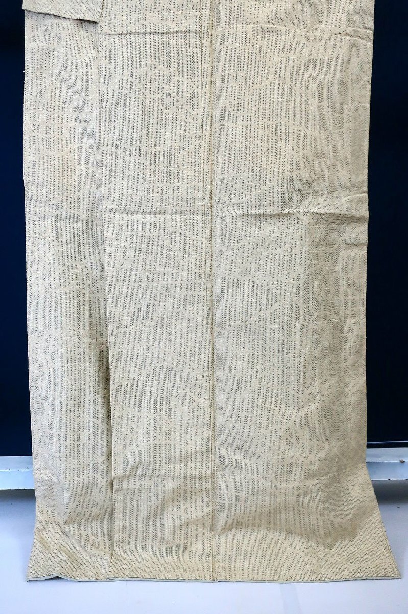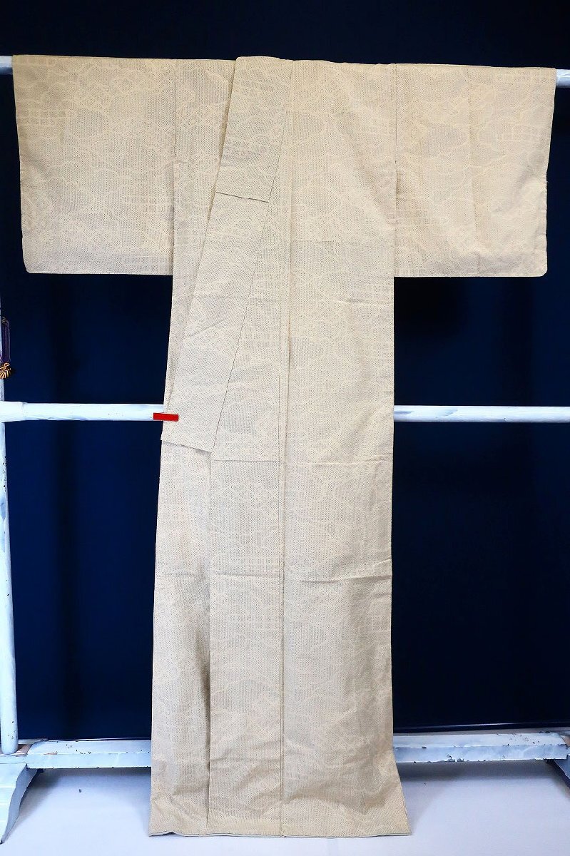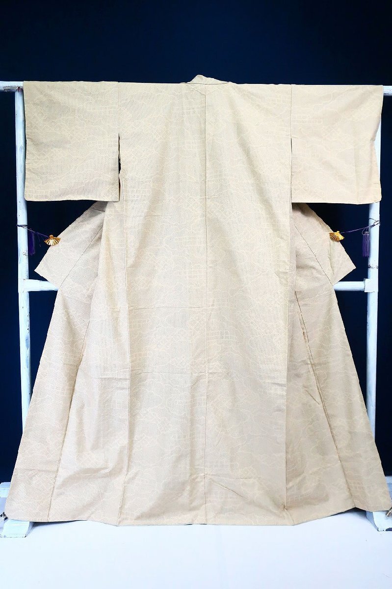 | 【送料無料】結城紬 雲 菱 アイボリー 身丈165cm 裄丈66cm トールサイズ お洒落 正絹 仕立て上がり 袷 カジュアル 着物フィ m-8412 |