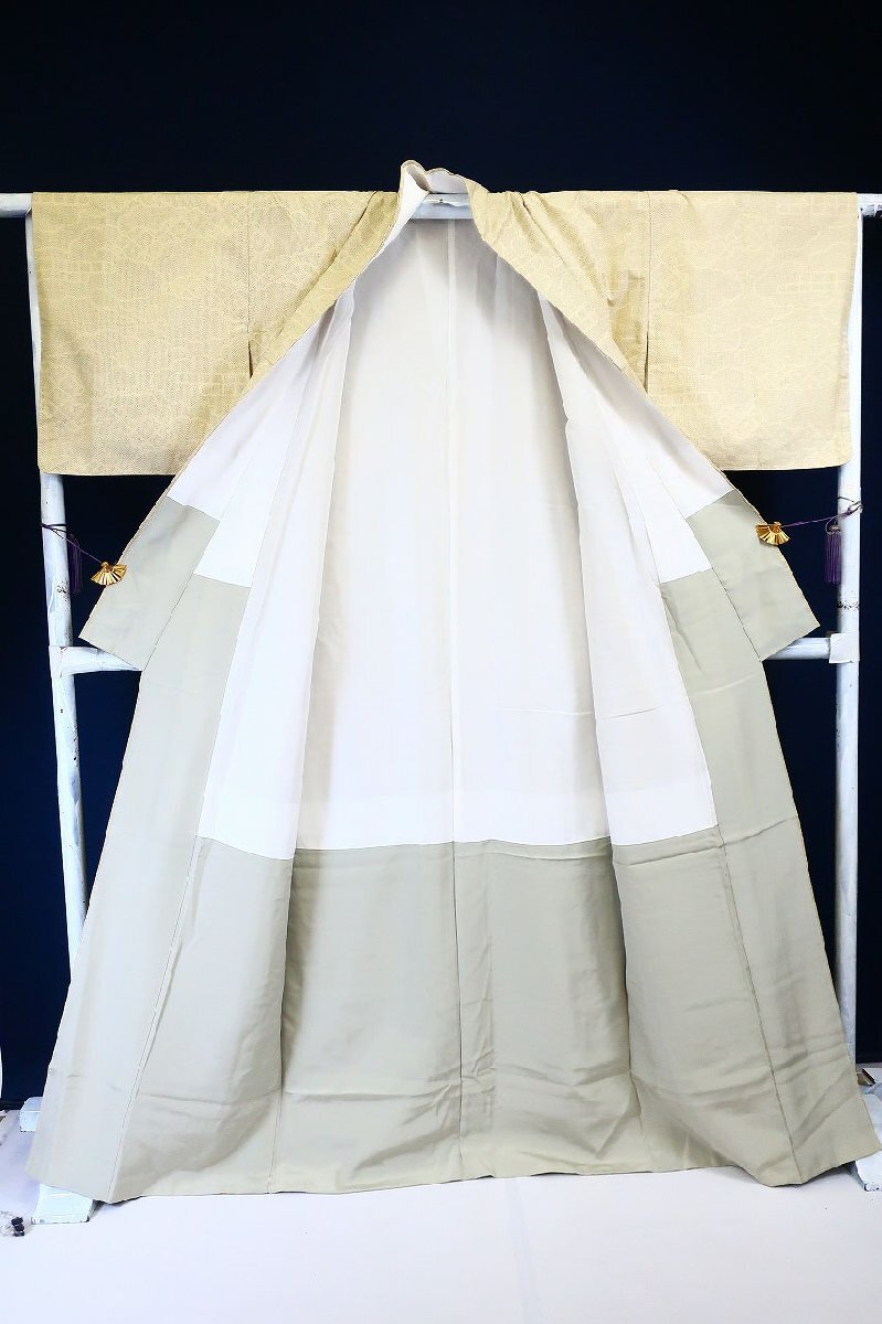〔着物の色〕 アイボリー 〔八掛の色〕 くすみグリーン 〔着物の素材〕 正絹 |