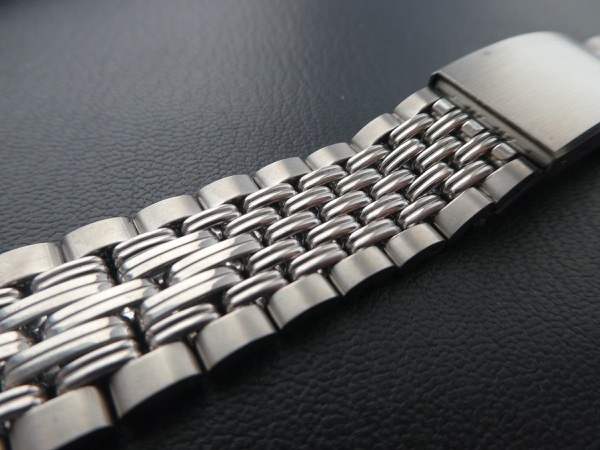 vintage マルマン MaruManブレスSS銀色未使用です。取り付け幅約18ミリ用(取付部バネ棒付きでそのまま装着できるタイプ)。長さ約15センチ。古いデッドストック品ですので保管時のよごれキズ、経年劣化など多少はありますのでご容赦願います。