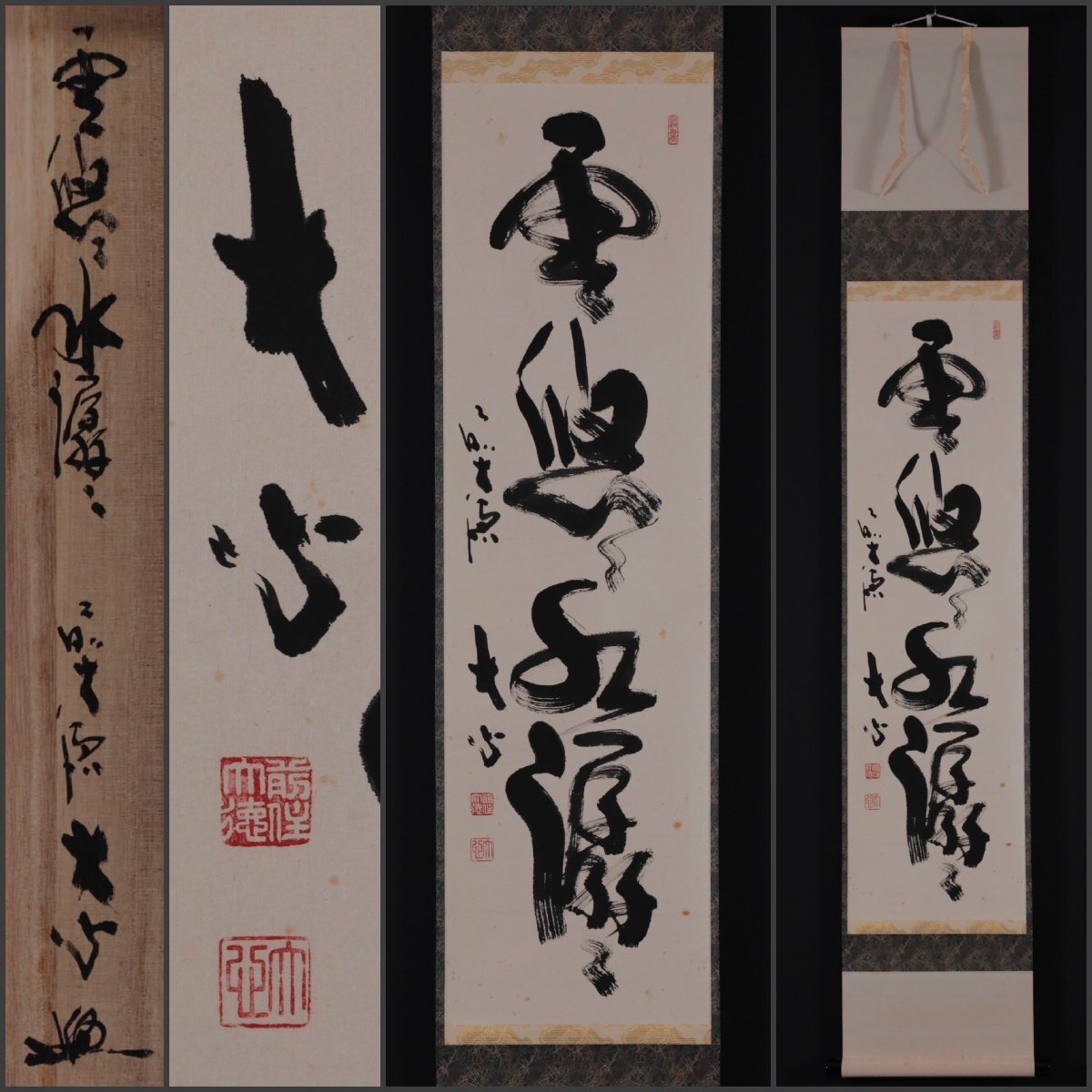 【模写】吉】13015 小室大心 書「雲悠々水潺々」 共箱 臨済宗 大徳寺派 長楽寺 仏教 岐阜県の人 茶掛け 茶道具 禅語 掛軸 掛け軸 骨董品