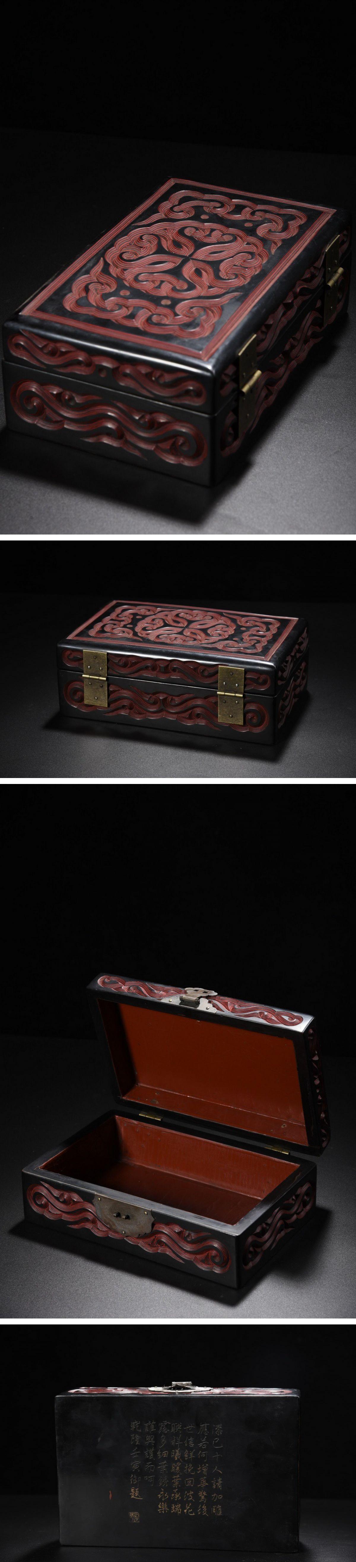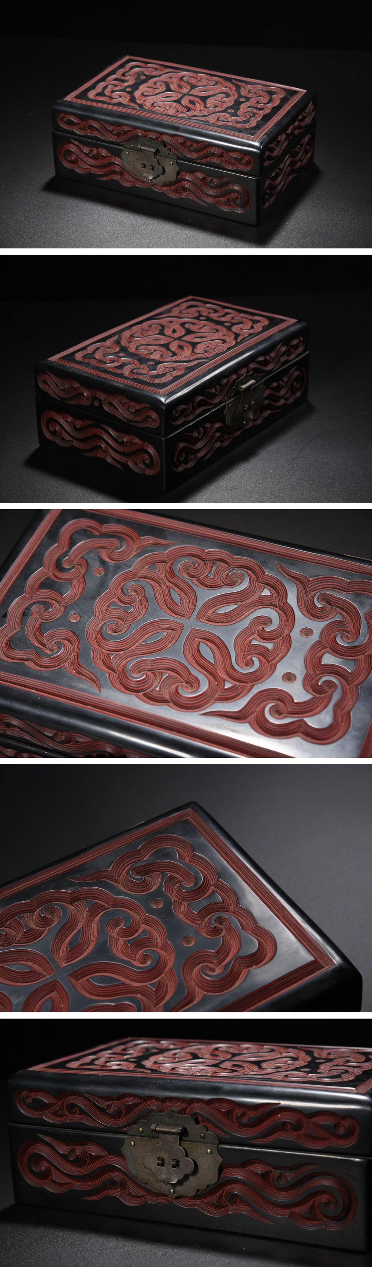 【清】某有名オークション購入 清時代 漆塗 雕漆 堆朱 祥雲紋蓋物 古置物 古擺件 古美術 時代コレクション7L10-14OY3