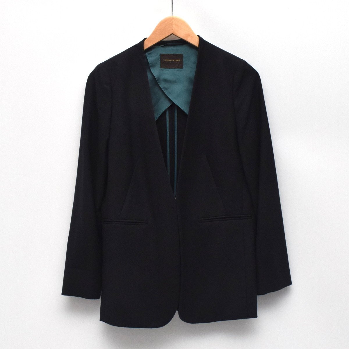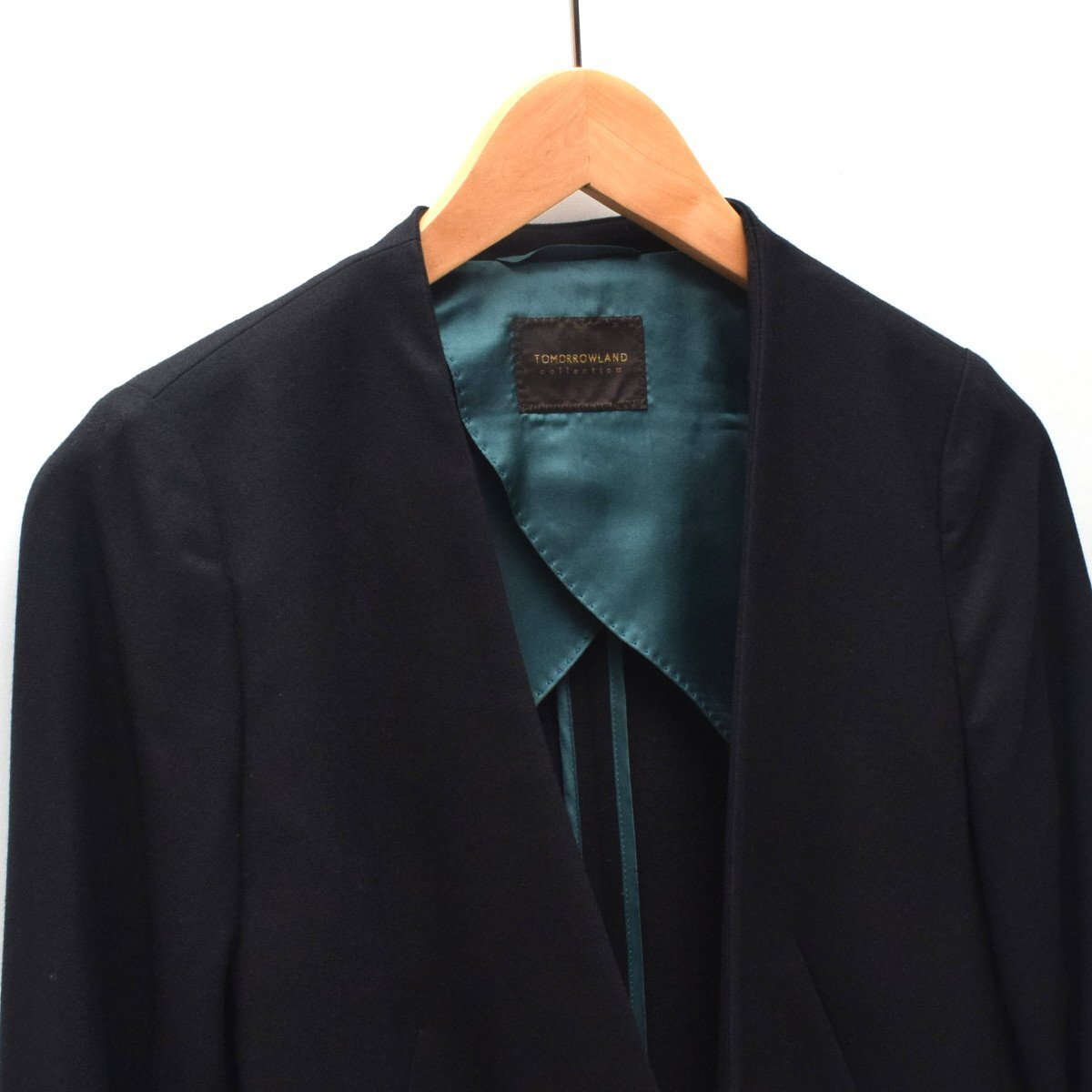 | 【美品】TOMORROWLAND トゥモローランド スーパーファインサキソニー ノーカラー ジャケット SIZE:34 ウール ※参41800円 |