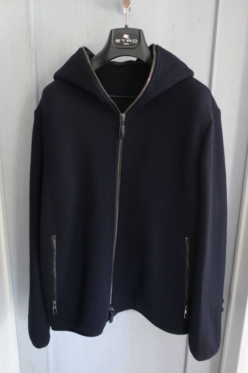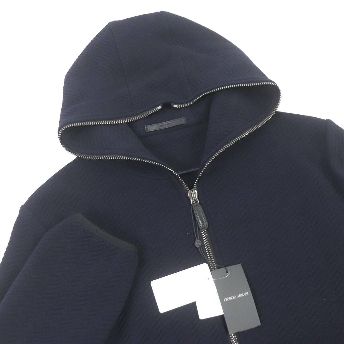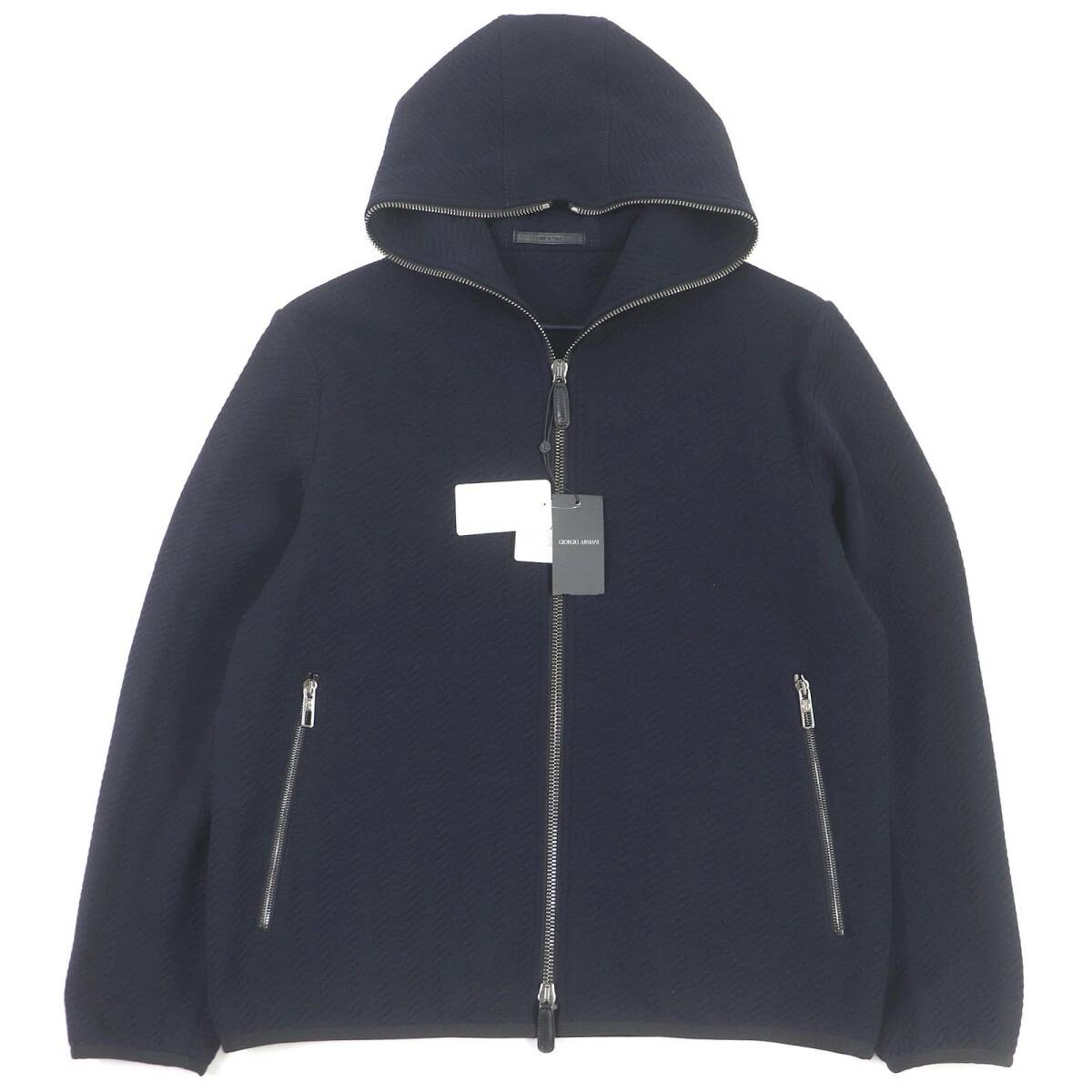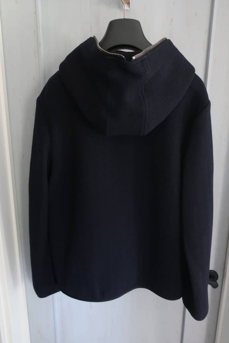 Giorgio Armaniの中でも最高峰となる黒ラベルのイタリア製の新品パーカージャケットです。色(紺色)・デザインは写真にてご確認ください。サイズは、ヨーロッパサイズ56です。素材は、表地:ウール98%、エラステン2%、裏地:ポリアミド100%です。実寸は、平置きした状態で、身幅:約56cm 着丈:約70cm 肩幅:約50cm 袖丈:約67cmです。素人採寸なので多少の寸法違いはお許しください。配送方法については、郵便局のゆうパックのみとなります。他の発送方法は対応致しませんのでくれぐれもご注意ください。洋服については、折り畳んで発送致しますので、シワになる事はご承知おきください。中古品は勿論の事、新品・未使用品でも個人が購入し保有しているものですので中古品扱いとなります。よって、中古品をご理解頂けない方、神経質な方は入札をご遠慮ください。返品・返金等のご対応は出来兼ねますのでご確認ください。また、落札後、2日以内にご連絡を頂けない場合や送料をお知らせした後、2日以内にお支払い頂けない場合、キャンセル扱いとさせて頂きます。