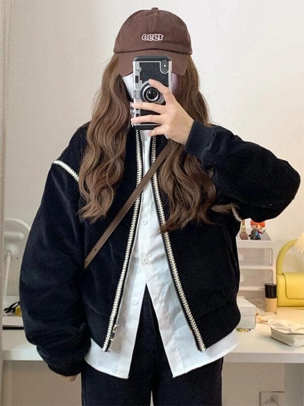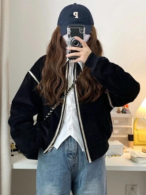 ☆新品未使用のブルゾン ステッチ デザイン ジャケット モード カジュアル アウターです☆